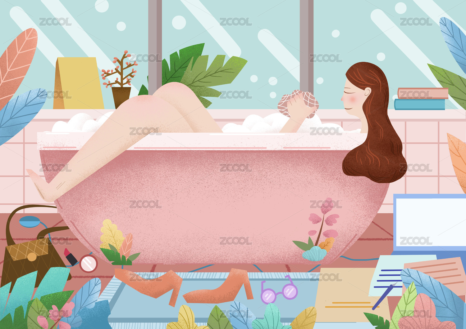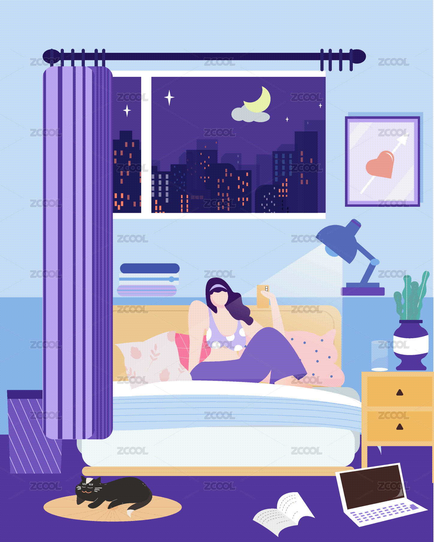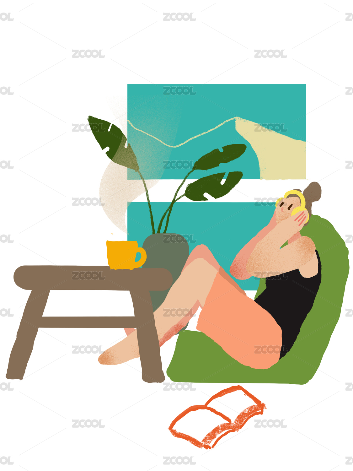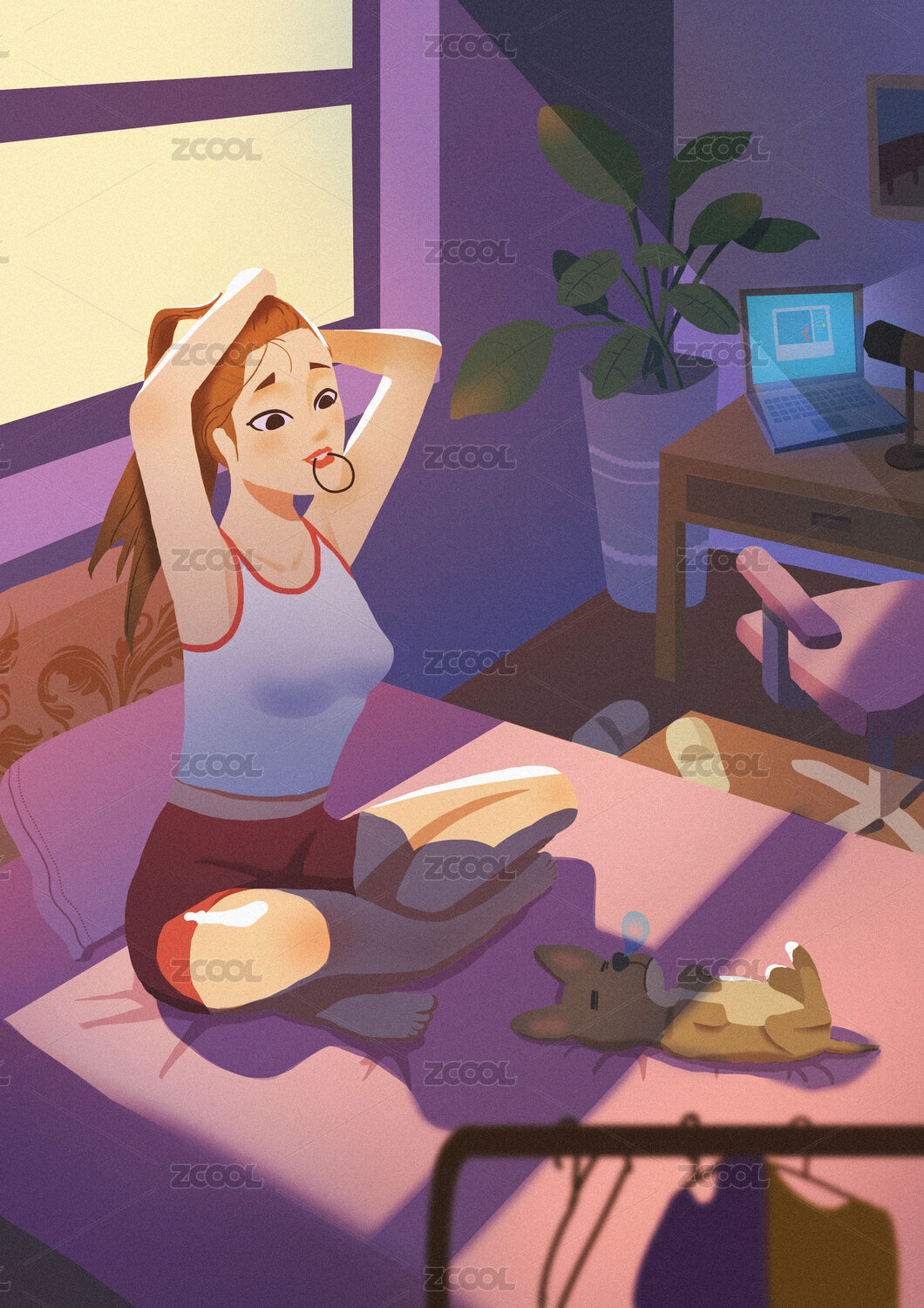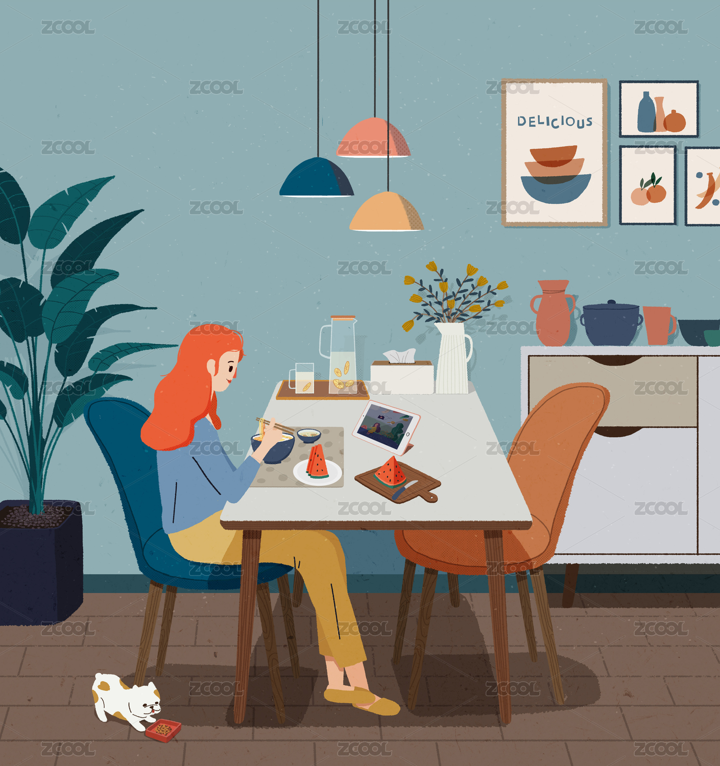 獨居女生在家吃飯看劇生活方式治愈插畫