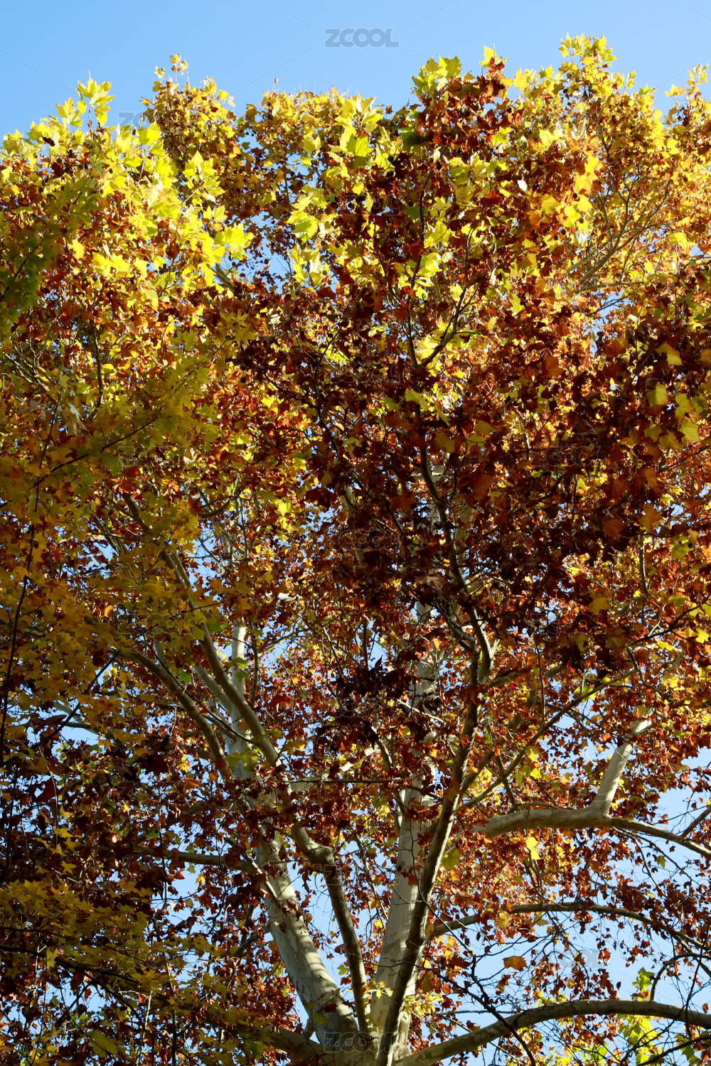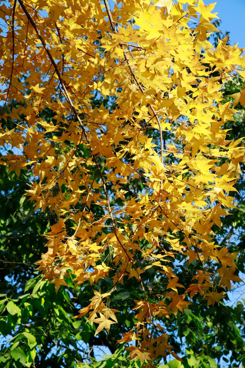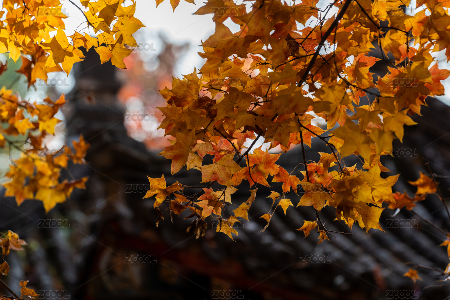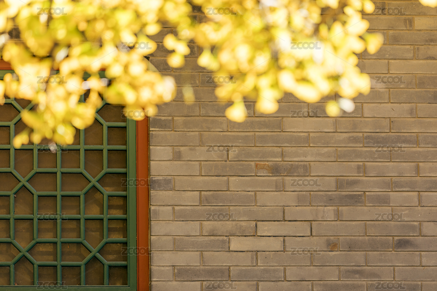 深秋藍天下的地壇宮殿與黃色銀杏樹