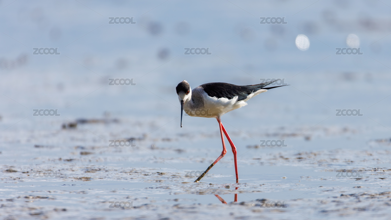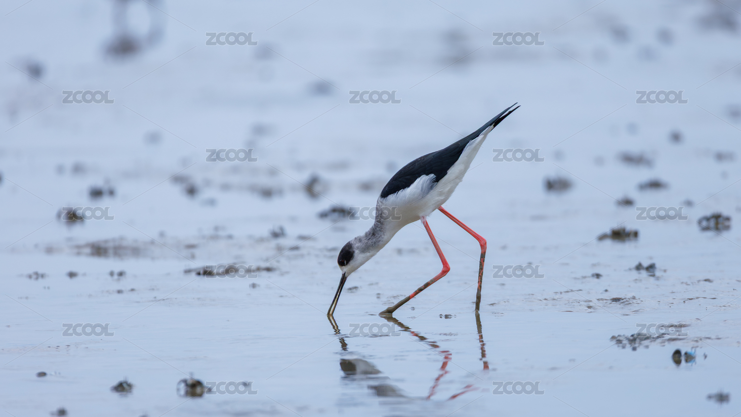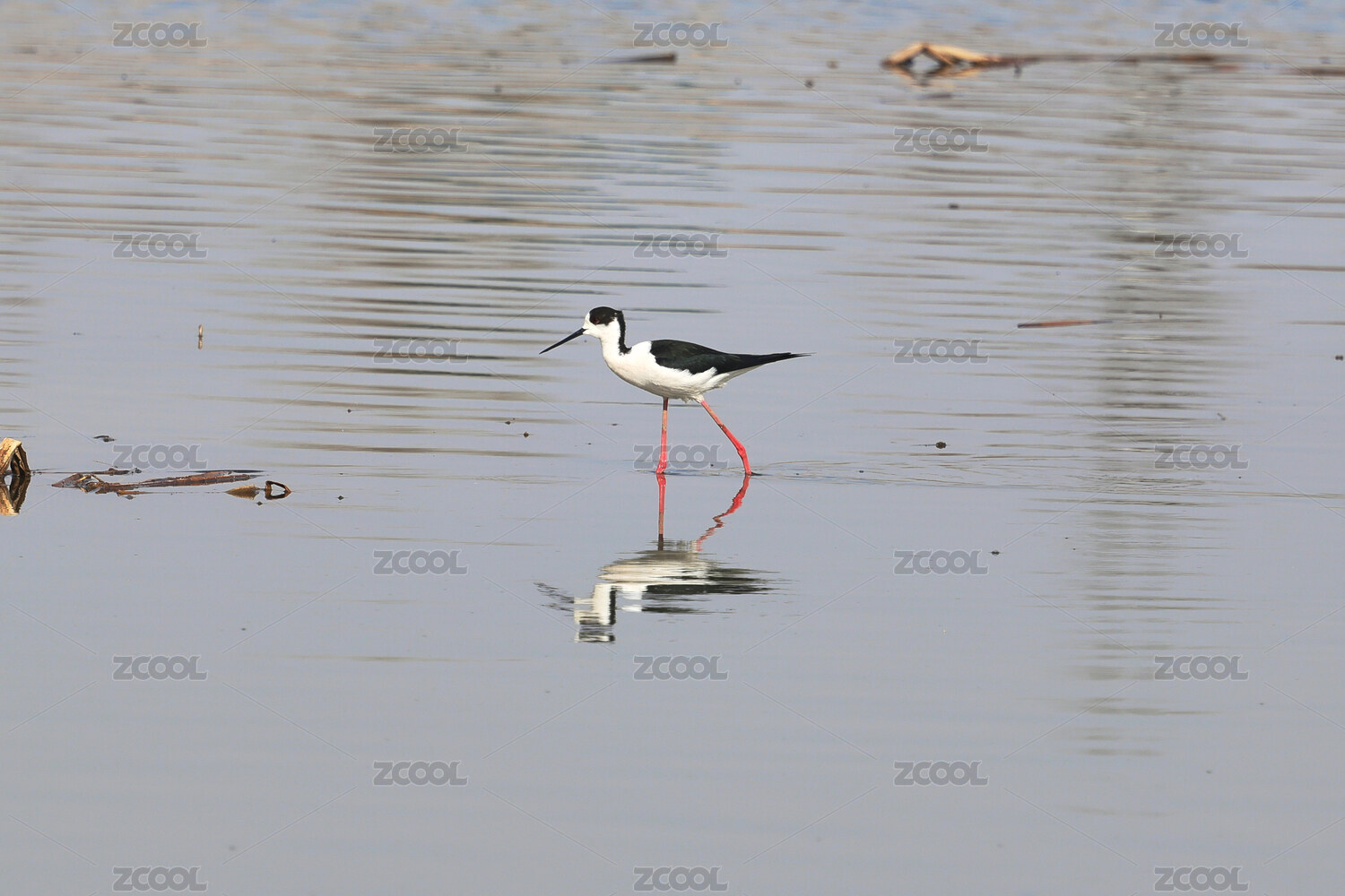黑翅長腳鷸鳥在濕地中棲息覓食