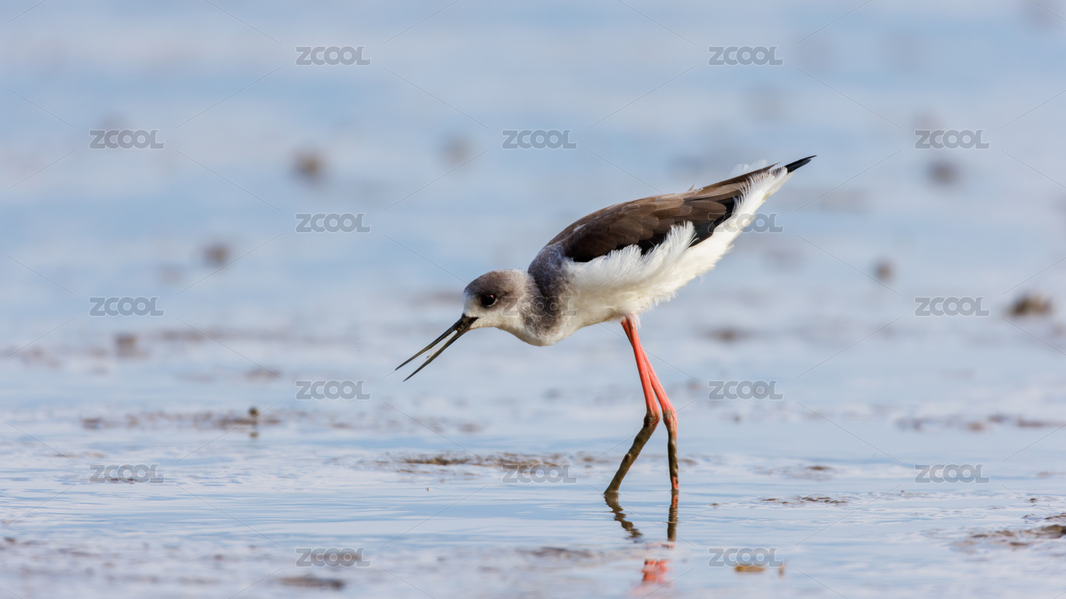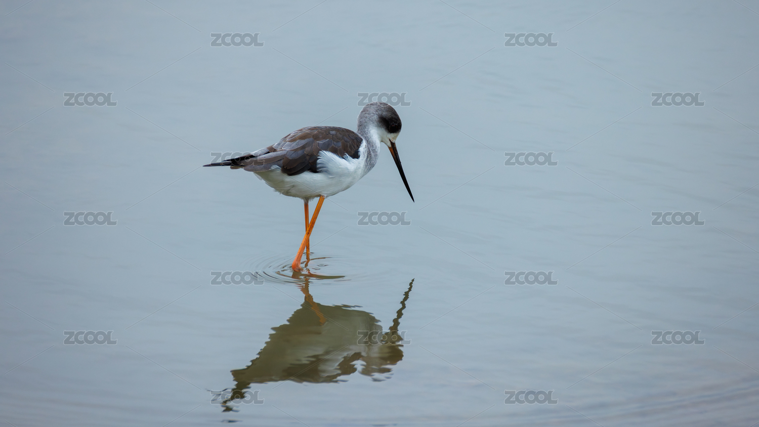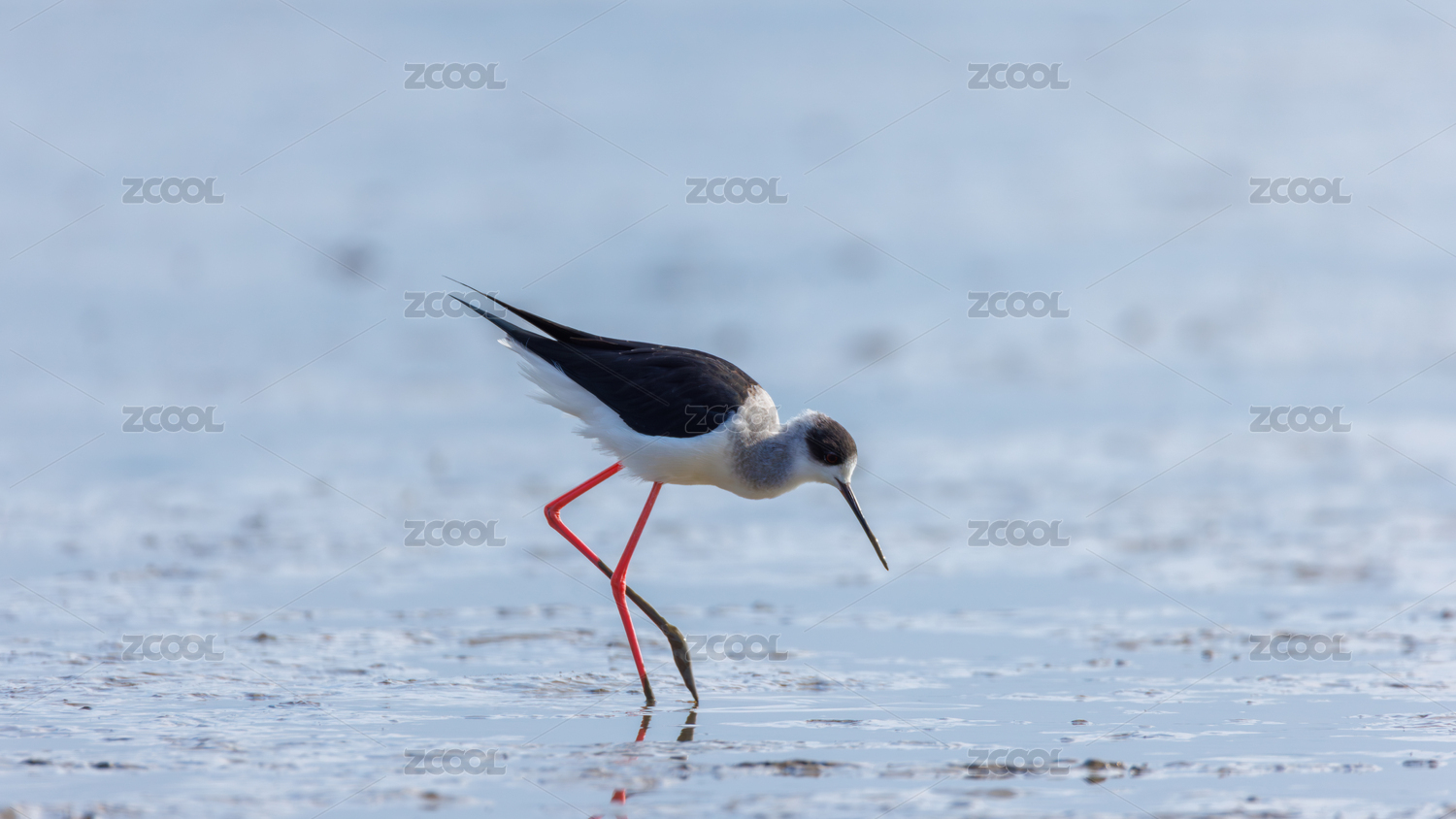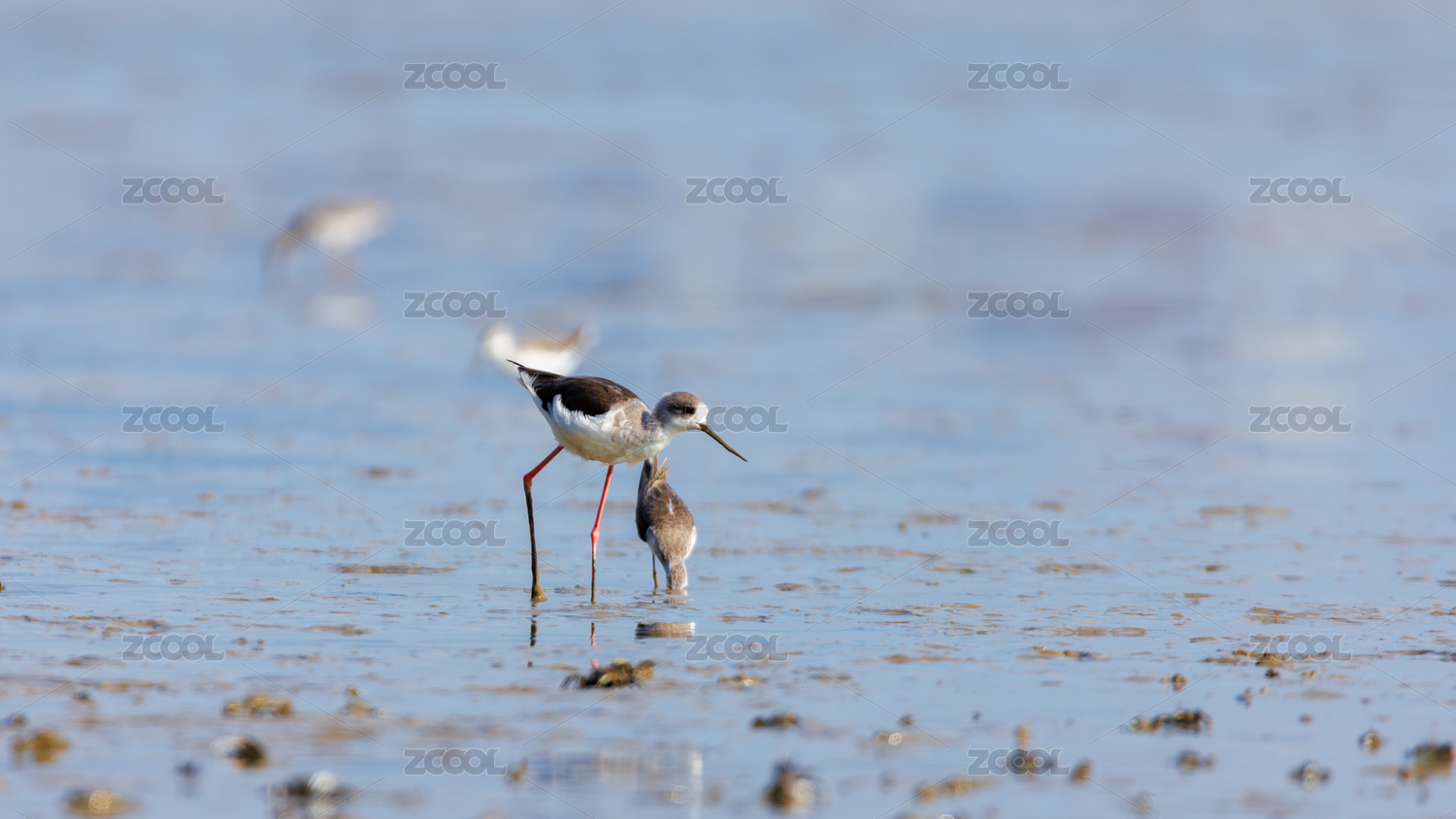 黑翅長腳鷸鳥在濕地中棲息覓食