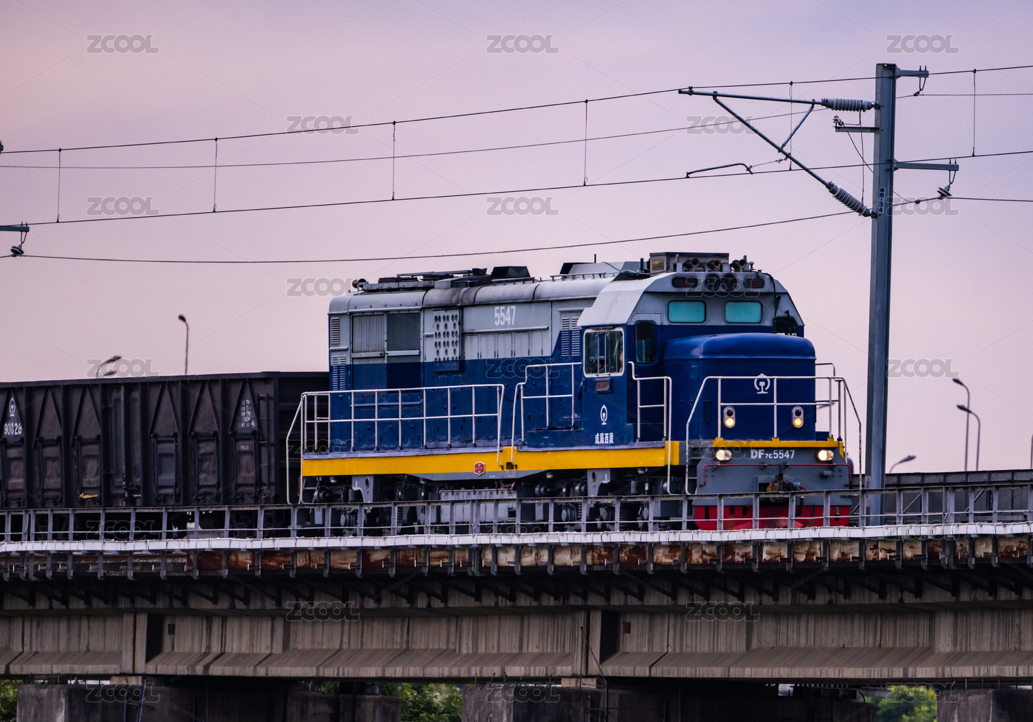 清晨在成昆鐵路成都段行駛中的普通貨運列車