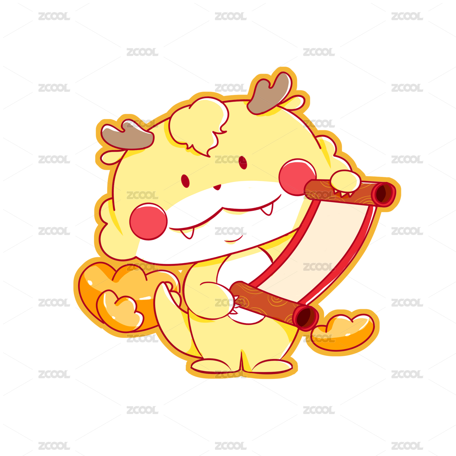 龍年吉祥物抱著元寶