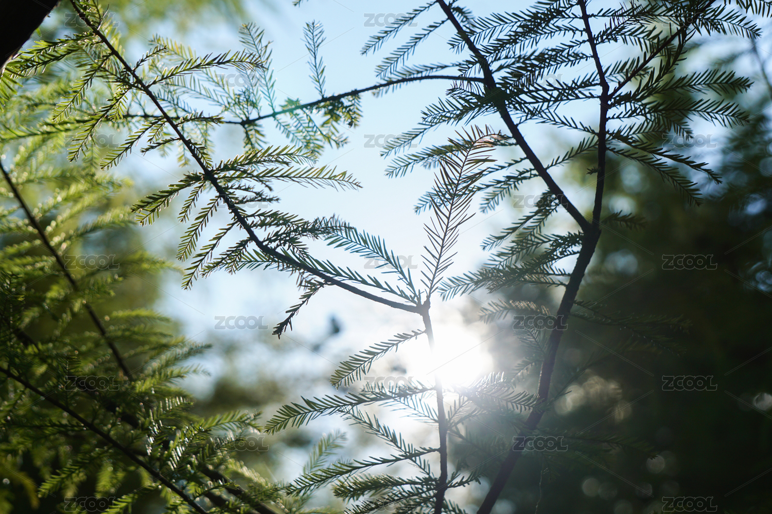陽光下夢幻的松樹枝特寫
