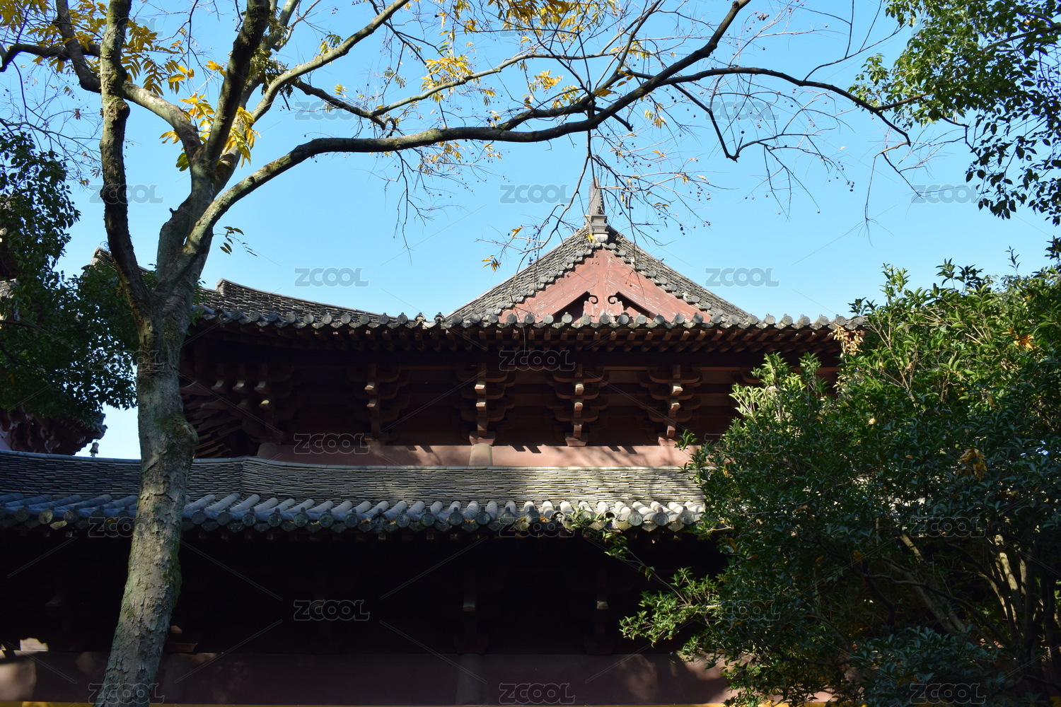 中國浙江杭州慧因高麗寺,陽光下的古建筑