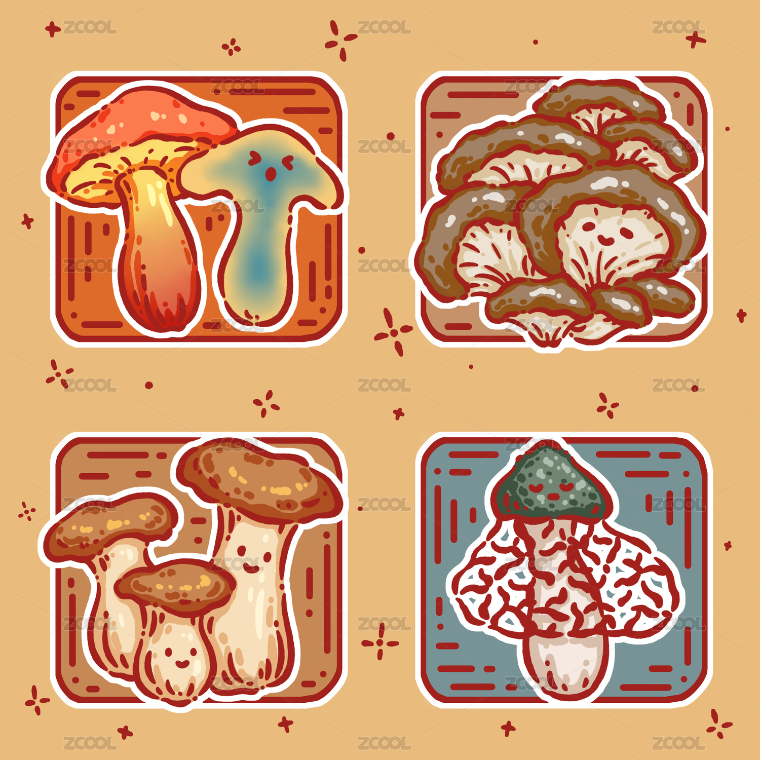 卡通蔬菜-見手青,平菇,杏鮑菇,竹蓀
