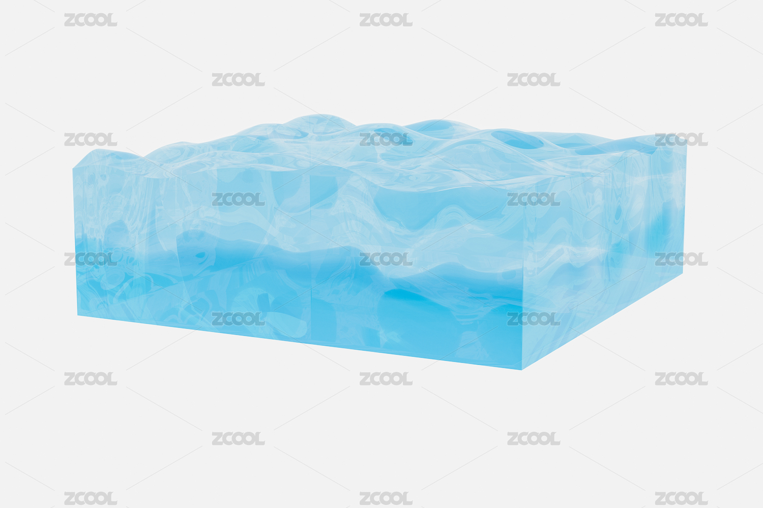 淡藍(lán)色表面起伏的水立方方塊,三維渲染