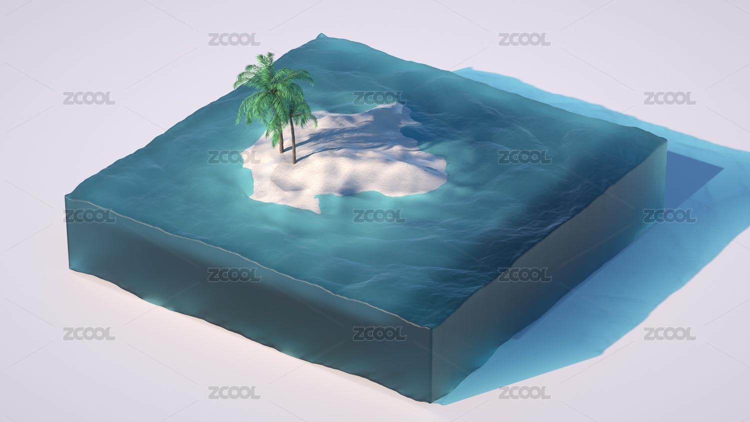 藍(lán)色水立方中的椰樹孤島