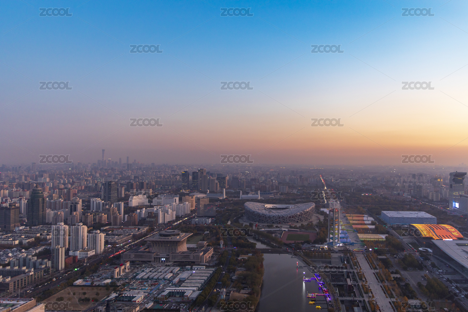 北京奧運(yùn)會場館,鳥巢和水立方城市夜景