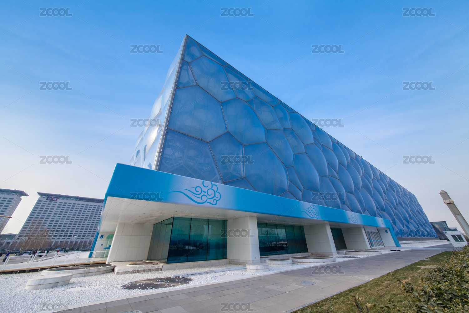 藍(lán)天下的奧林匹克公園水立方建筑