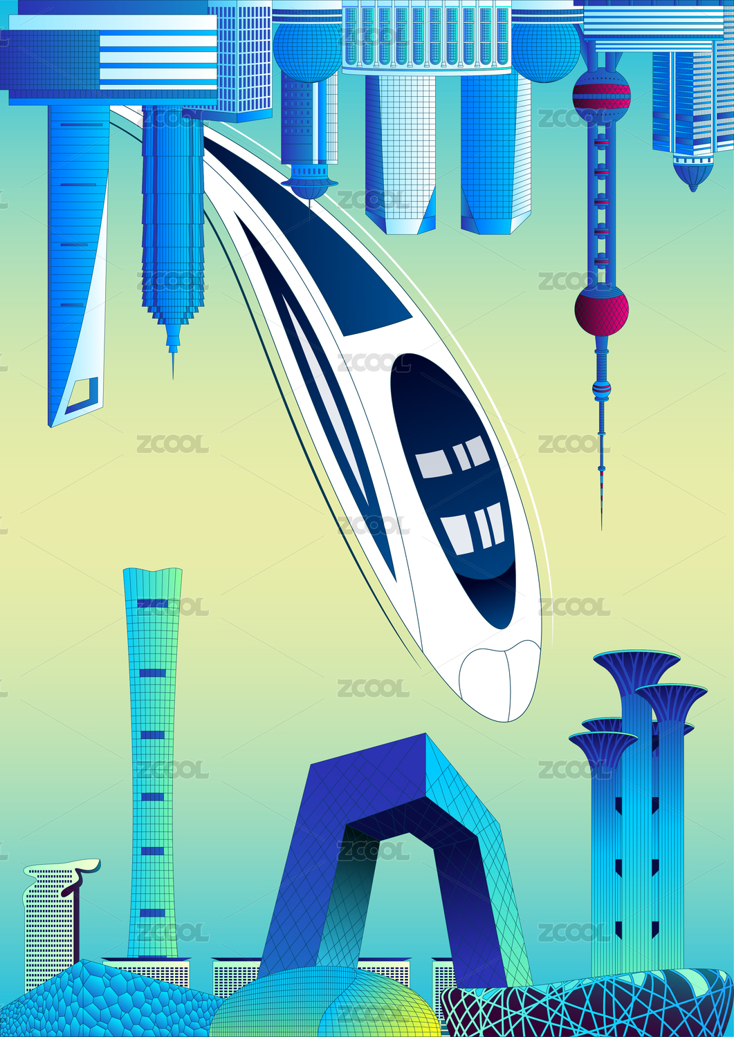 高鐵穿越北京和上海建筑群