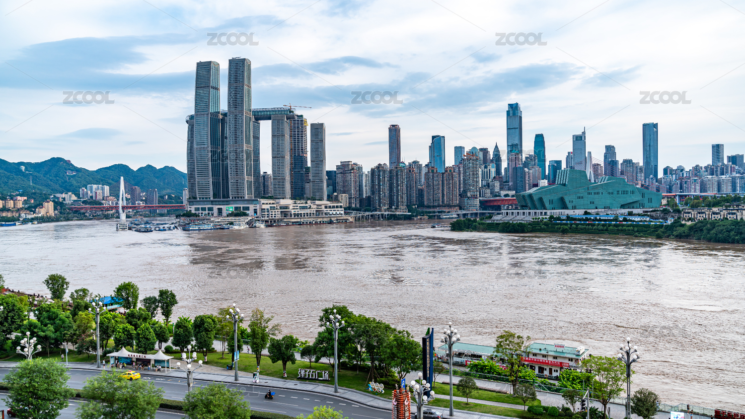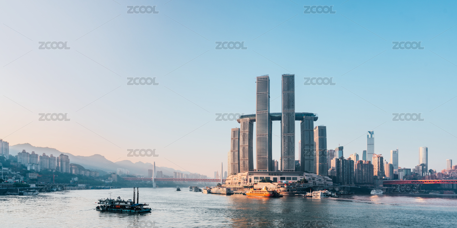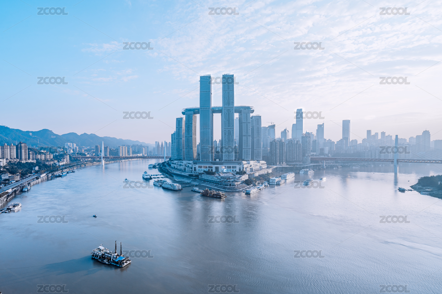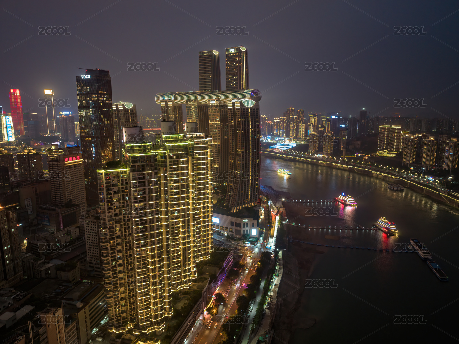 重慶朝天門來福士辦公樓商場日落夜景航拍