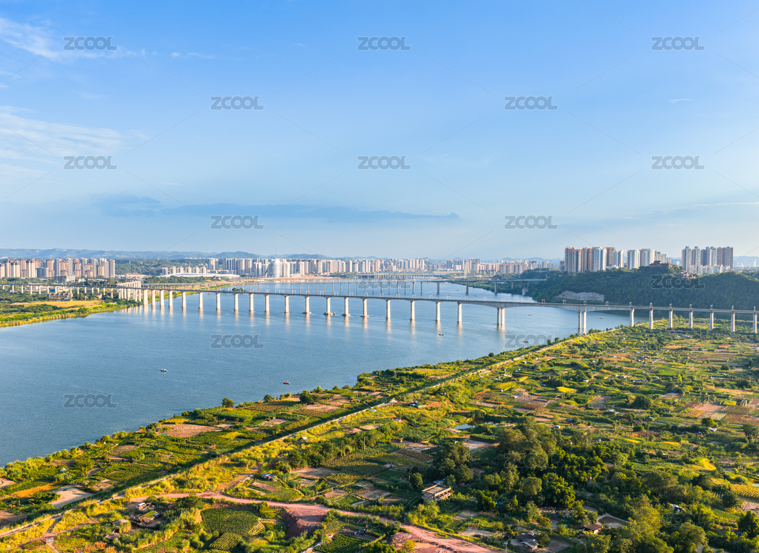 中國(guó)四川南充嘉陵江兩岸城市風(fēng)光航拍圖