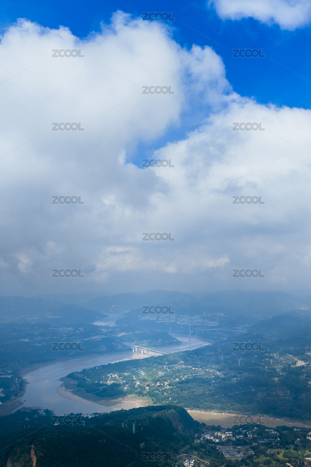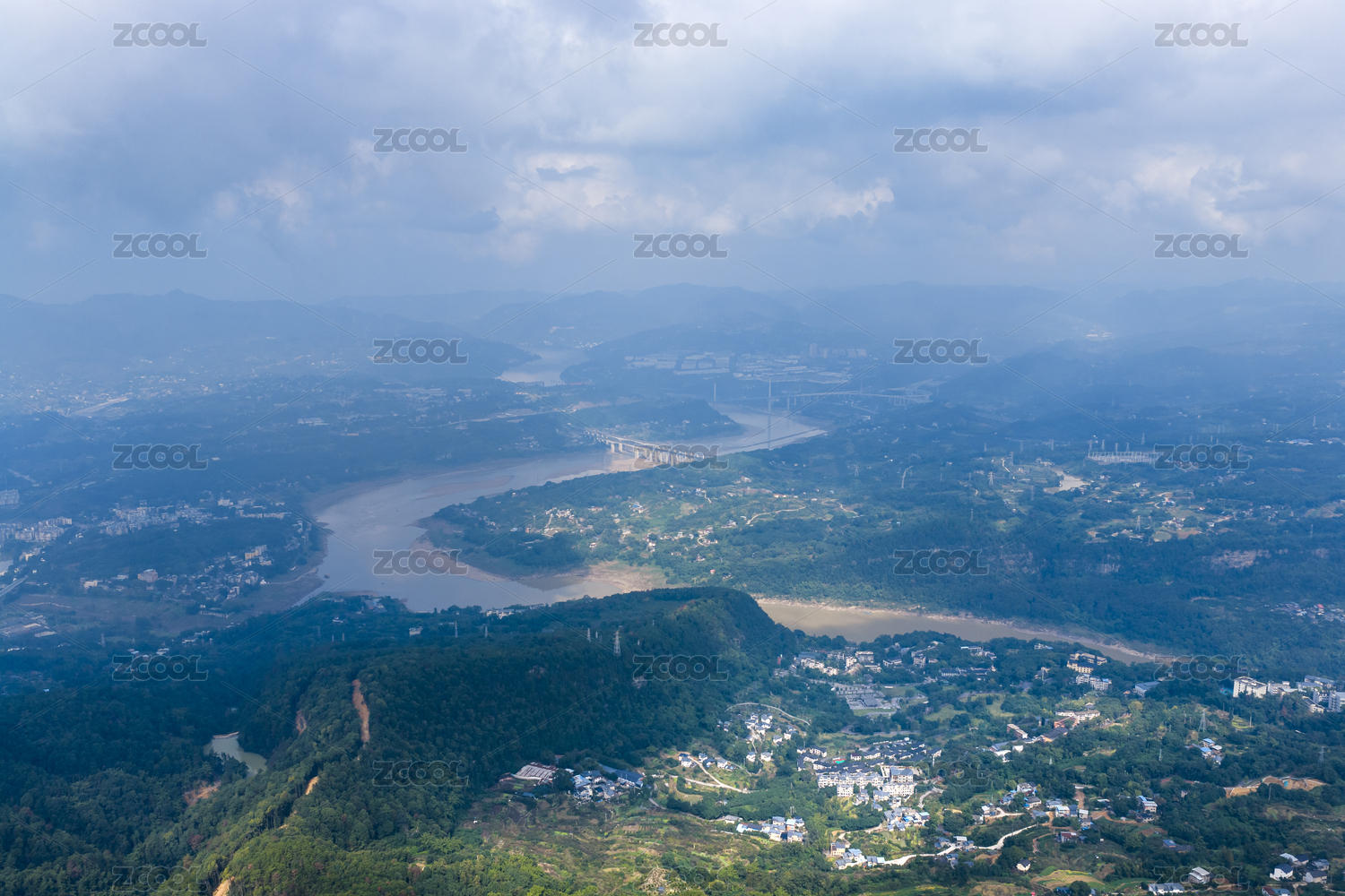 重慶北碚縉云山視角下的俯視蜿蜒的嘉陵江
