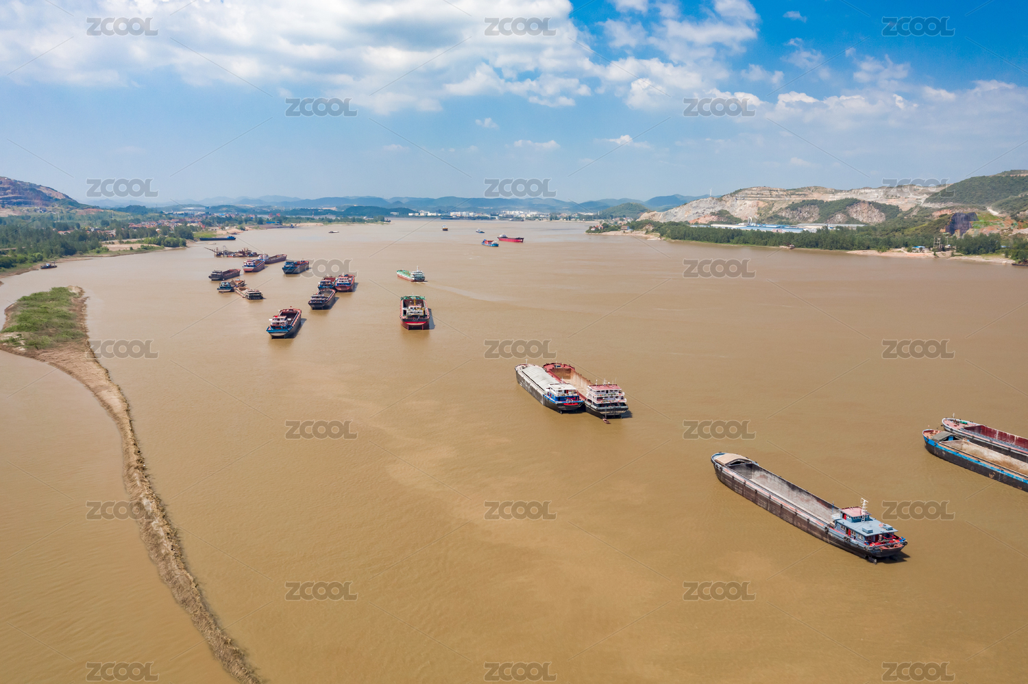 航拍長(zhǎng)江上的沙洲及長(zhǎng)江航道