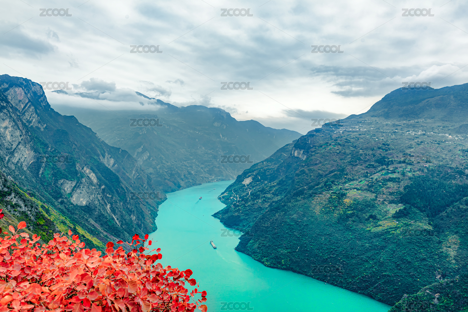 巫山紅葉前景下的長(zhǎng)江三峽巫峽景區(qū)