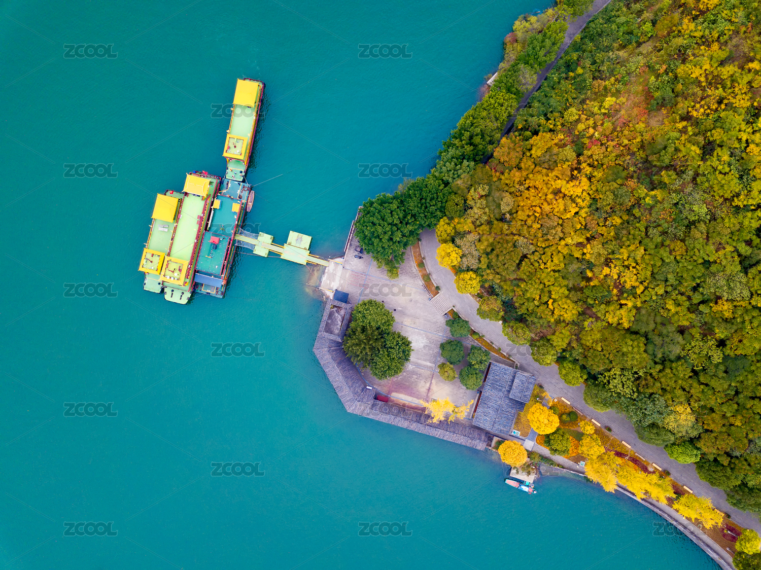 航拍長(zhǎng)江三峽瞿塘峽白帝城景區(qū)旅游碼頭