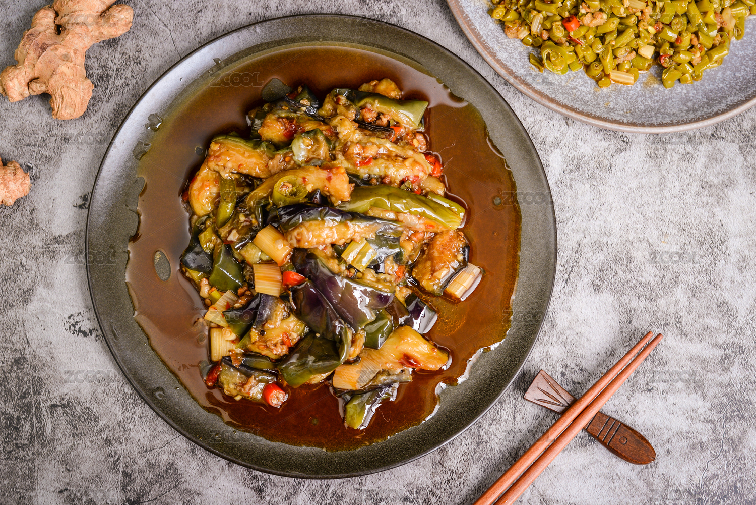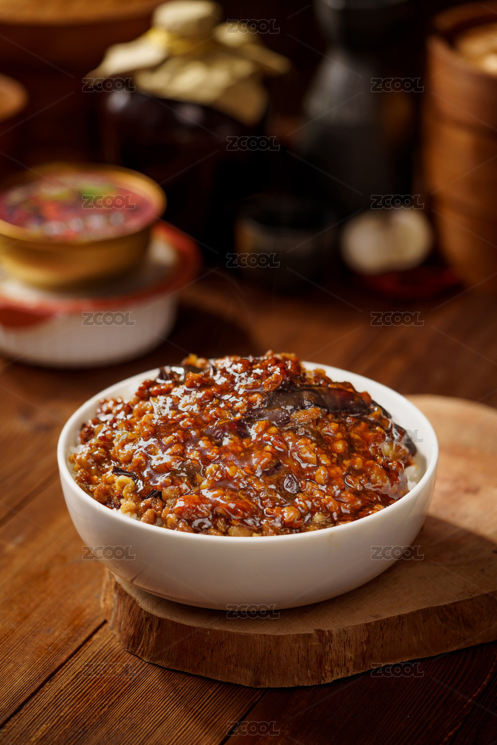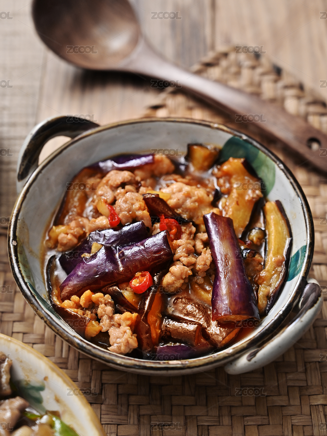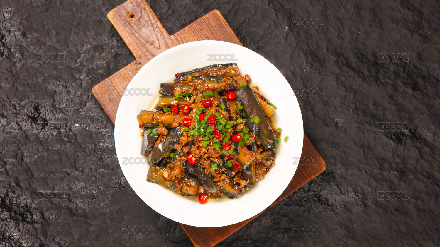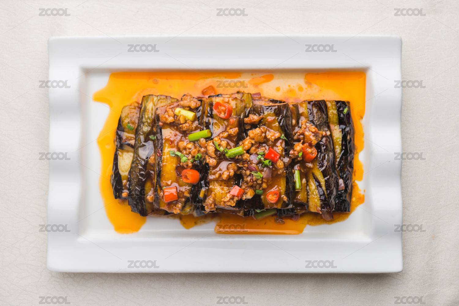 簡(jiǎn)單背景下的特色中式快餐肉末茄子