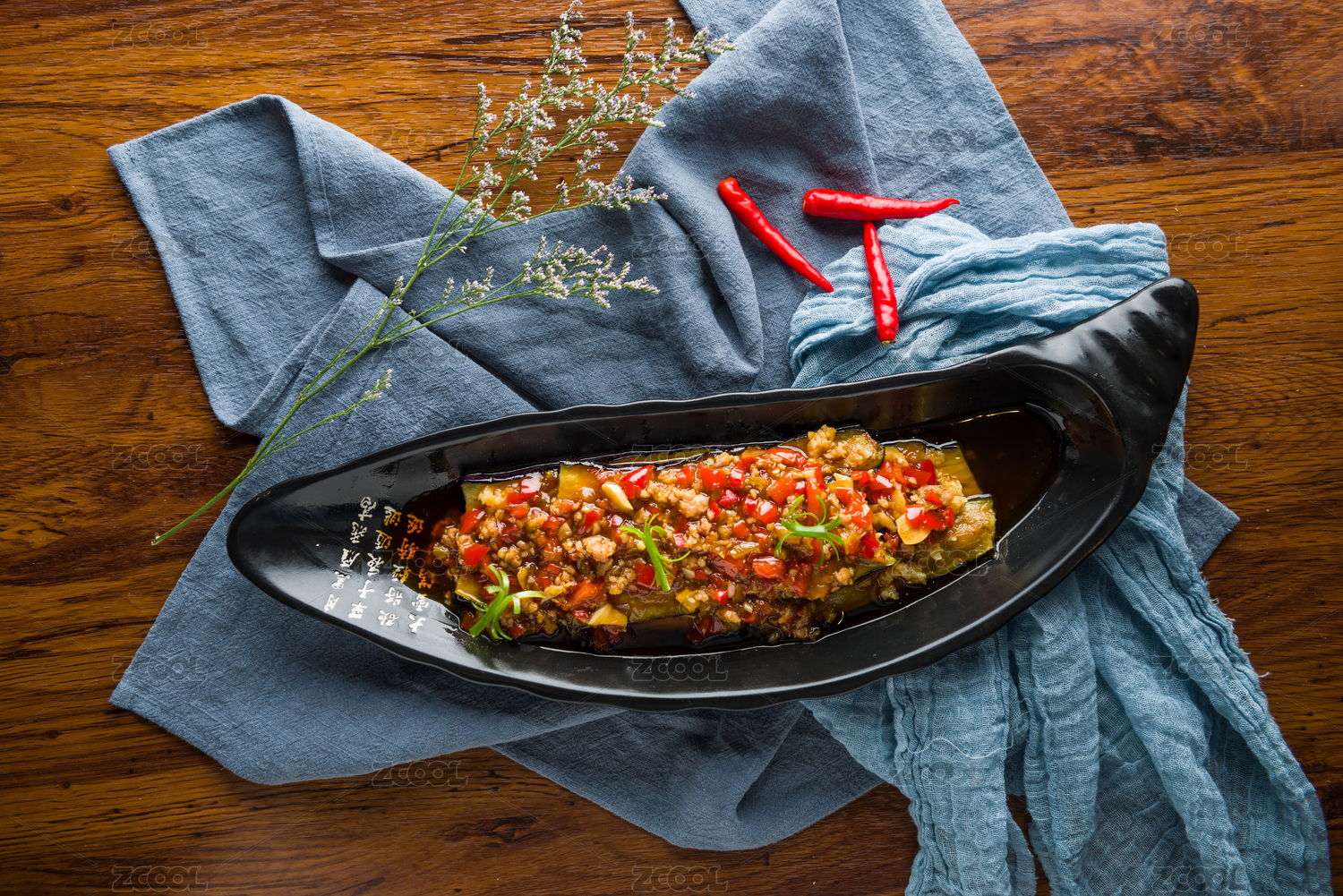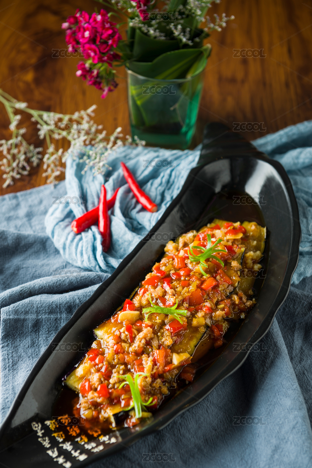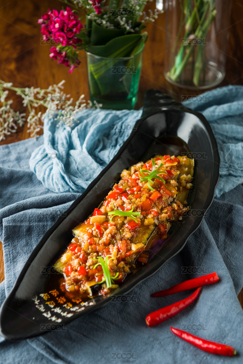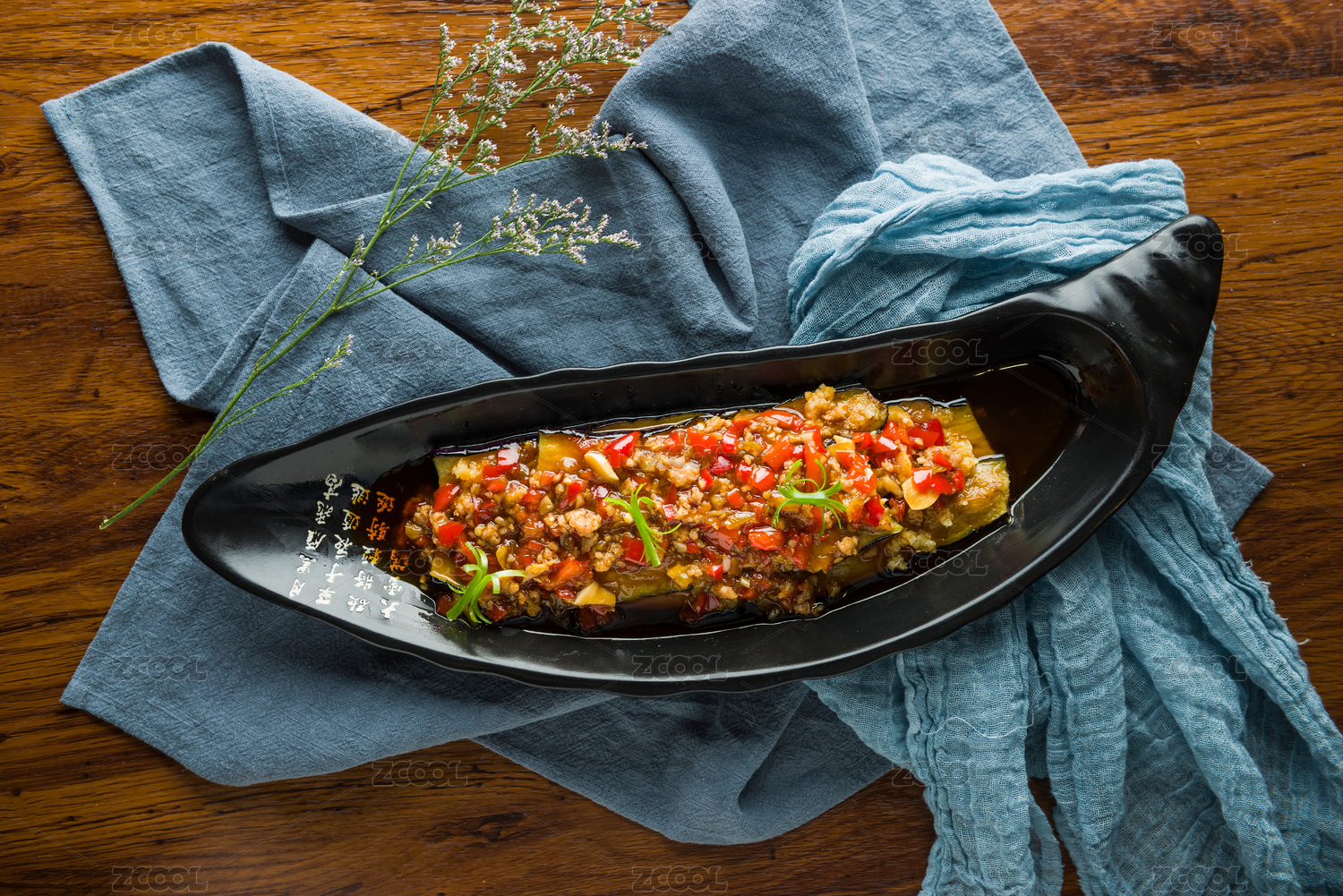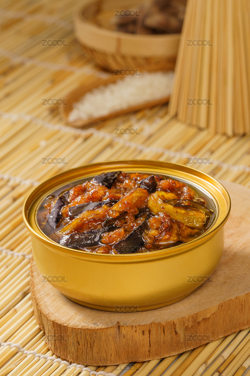 簡(jiǎn)單背景下的特色中式快餐肉末茄子