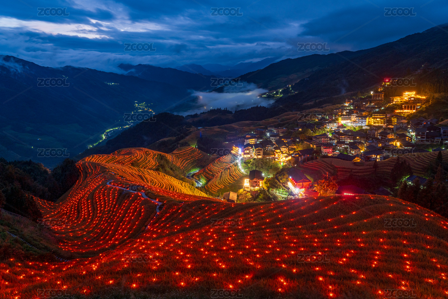 廣西龍勝龍脊梯田平安寨夜景