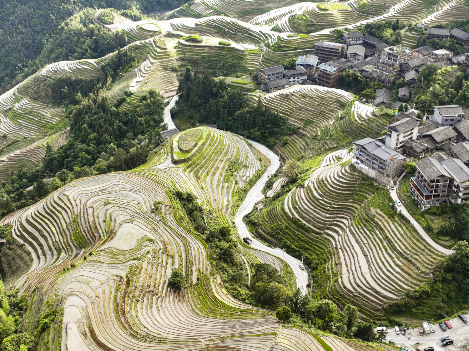 中國廣西桂林航拍龍脊梯田平安寨