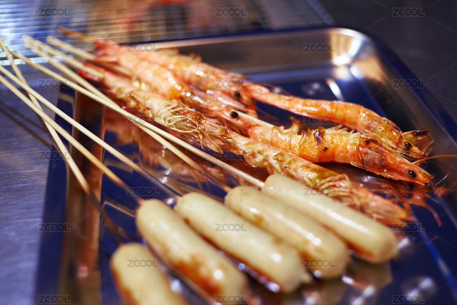 放在不銹鋼托盤上的美食——鮮美誘人的燒烤串