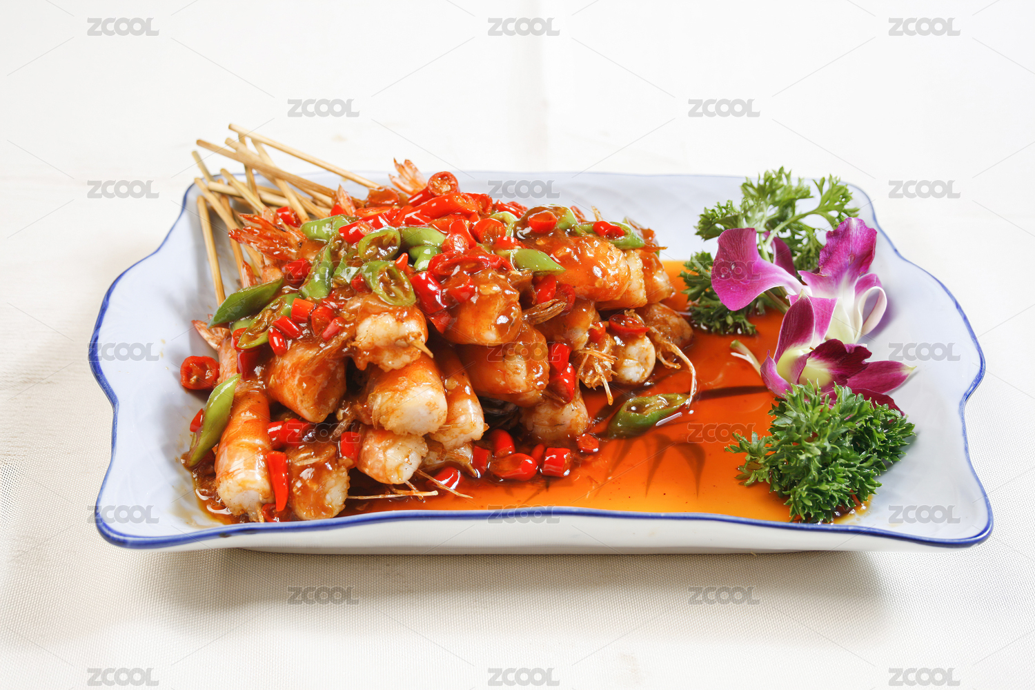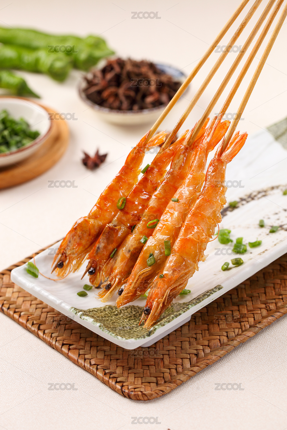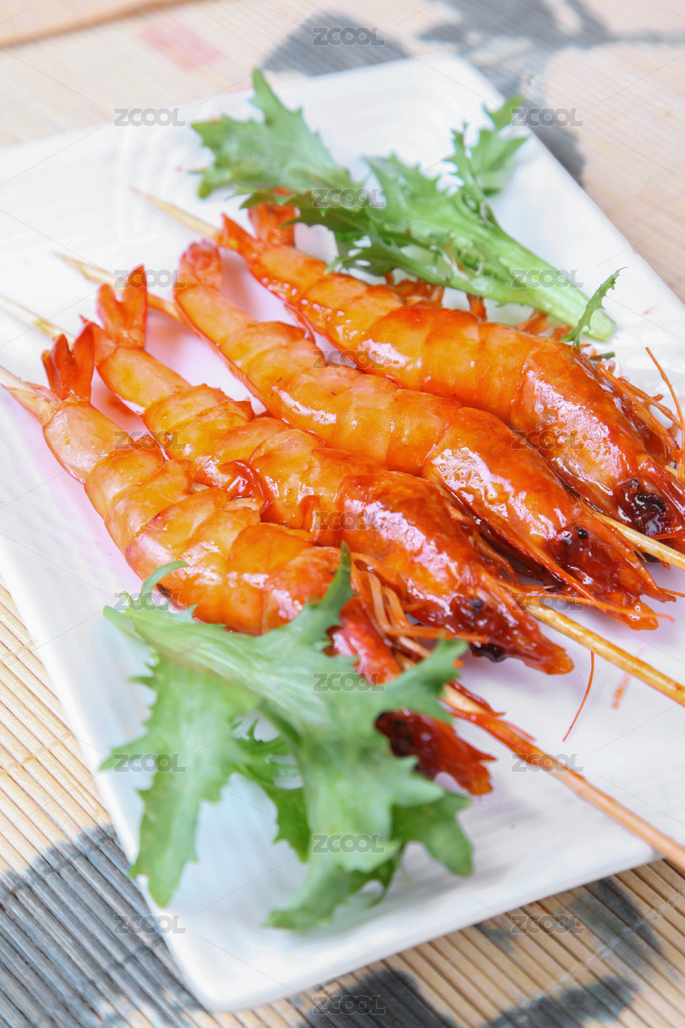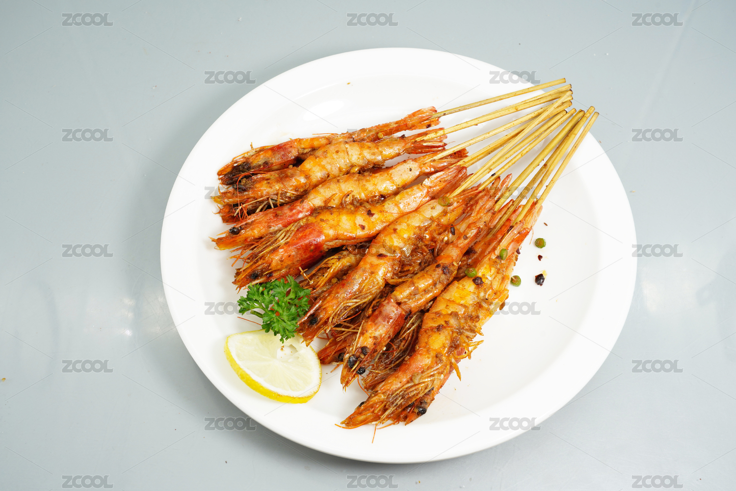 在燒烤架上的美味食品——鮮美誘人的蝦