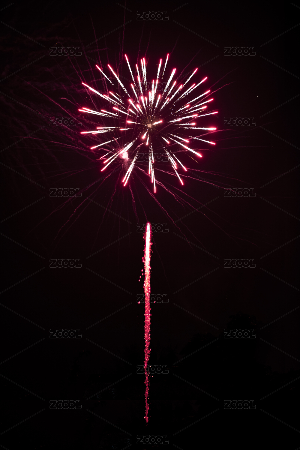 夜空中綻放的紅色煙火