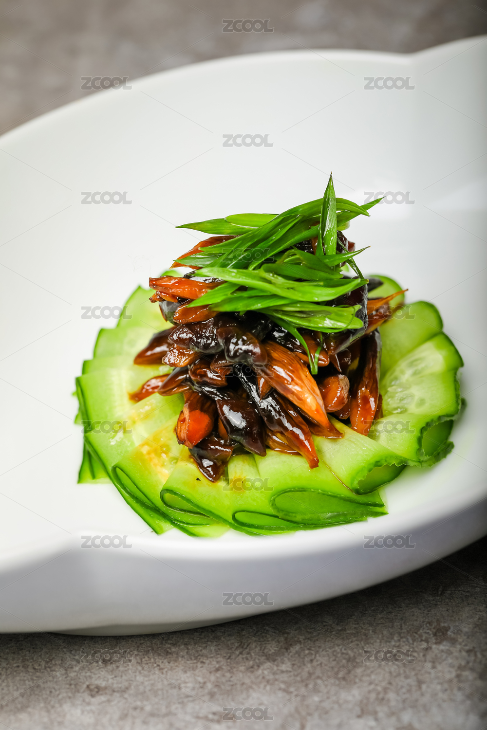 白色盤子里的新鮮黃瓜冷菜