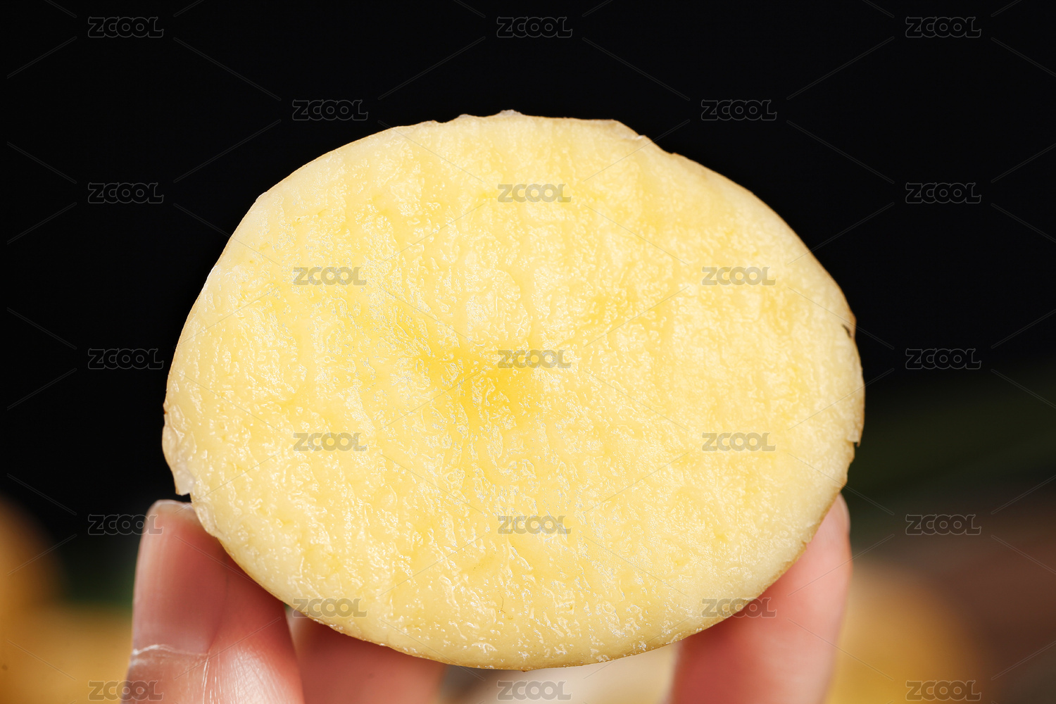 手上拿著一個(gè)半邊黃心土豆