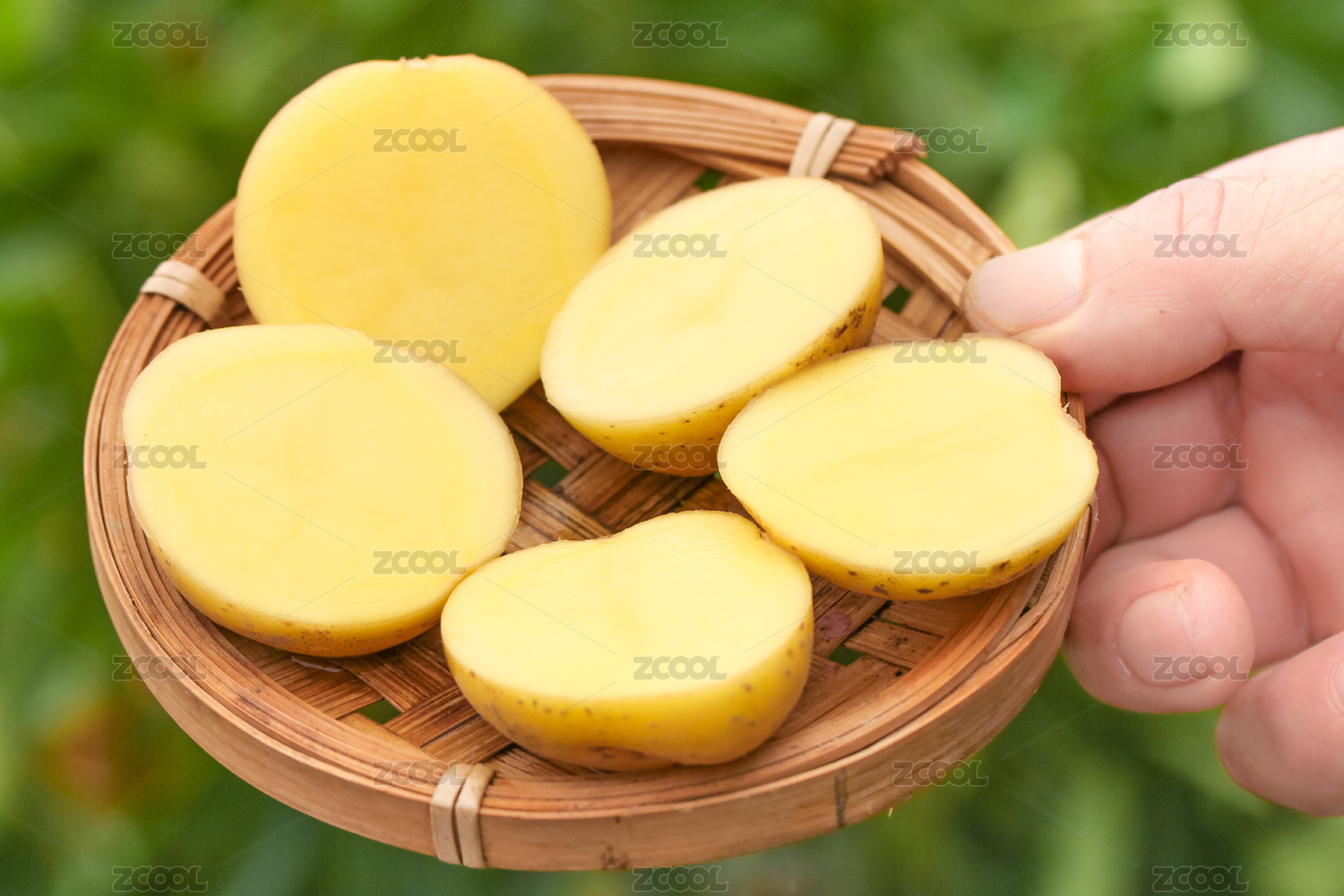 手上端著一藍(lán)切塊的黃心土豆