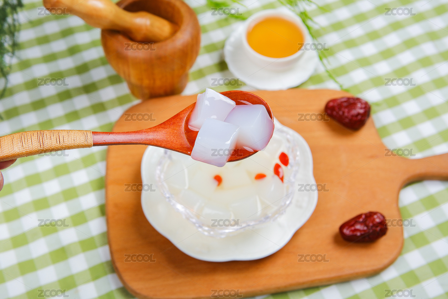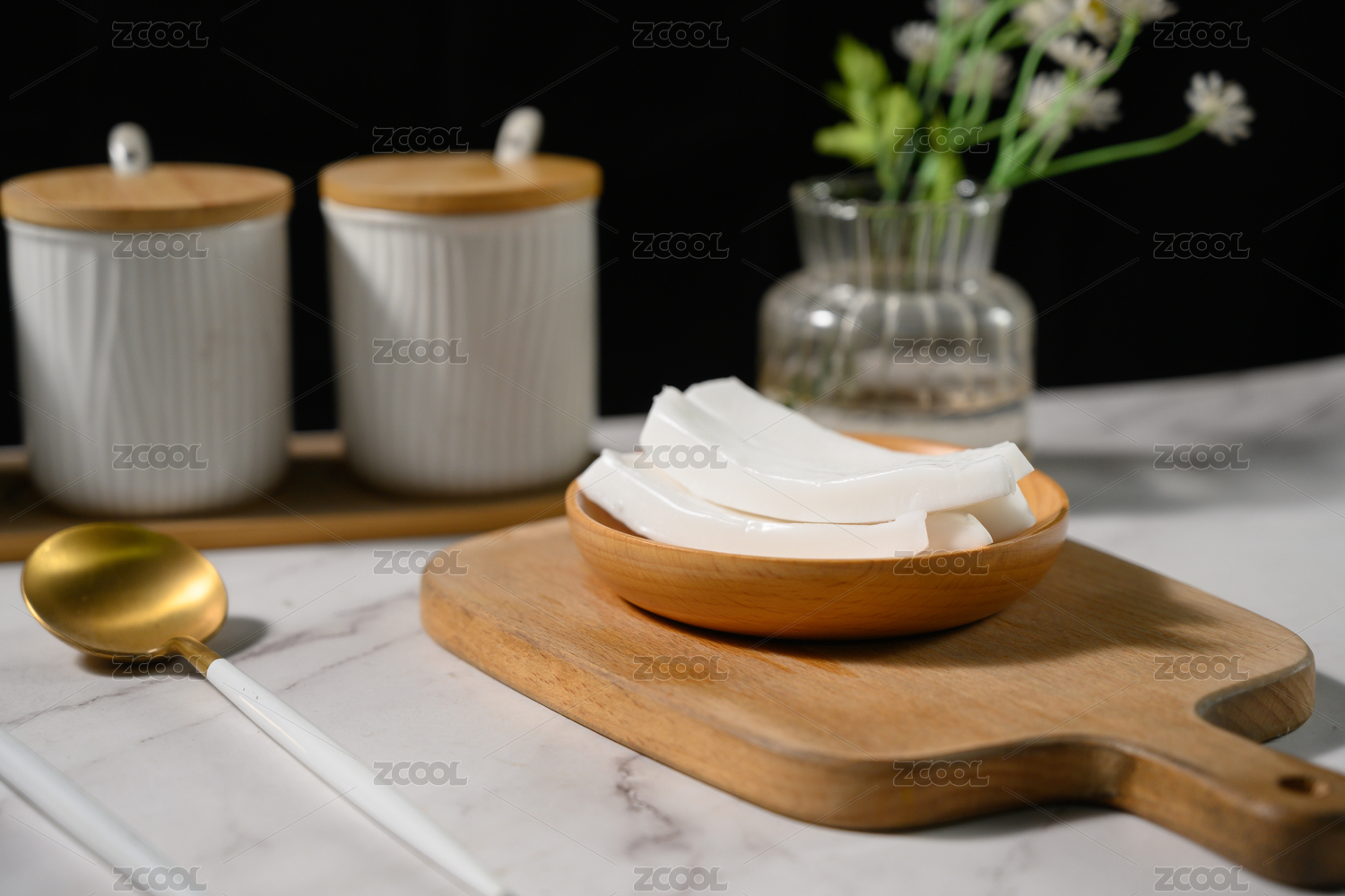 白底上的青椰子肉