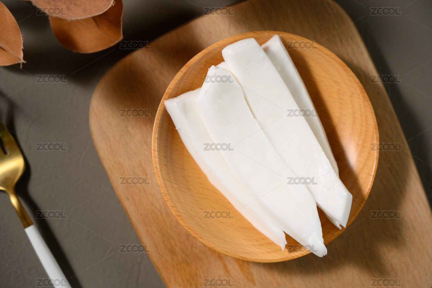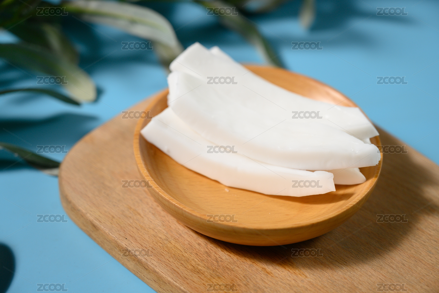 白底上的椰子肉切面