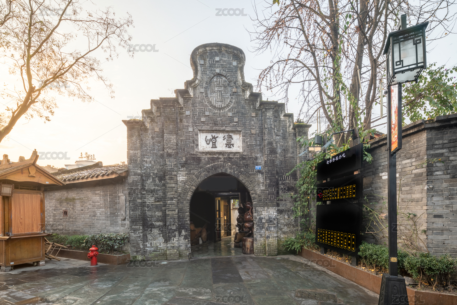 四川省成都市寬窄巷子古街愷廬古建筑日出風(fēng)