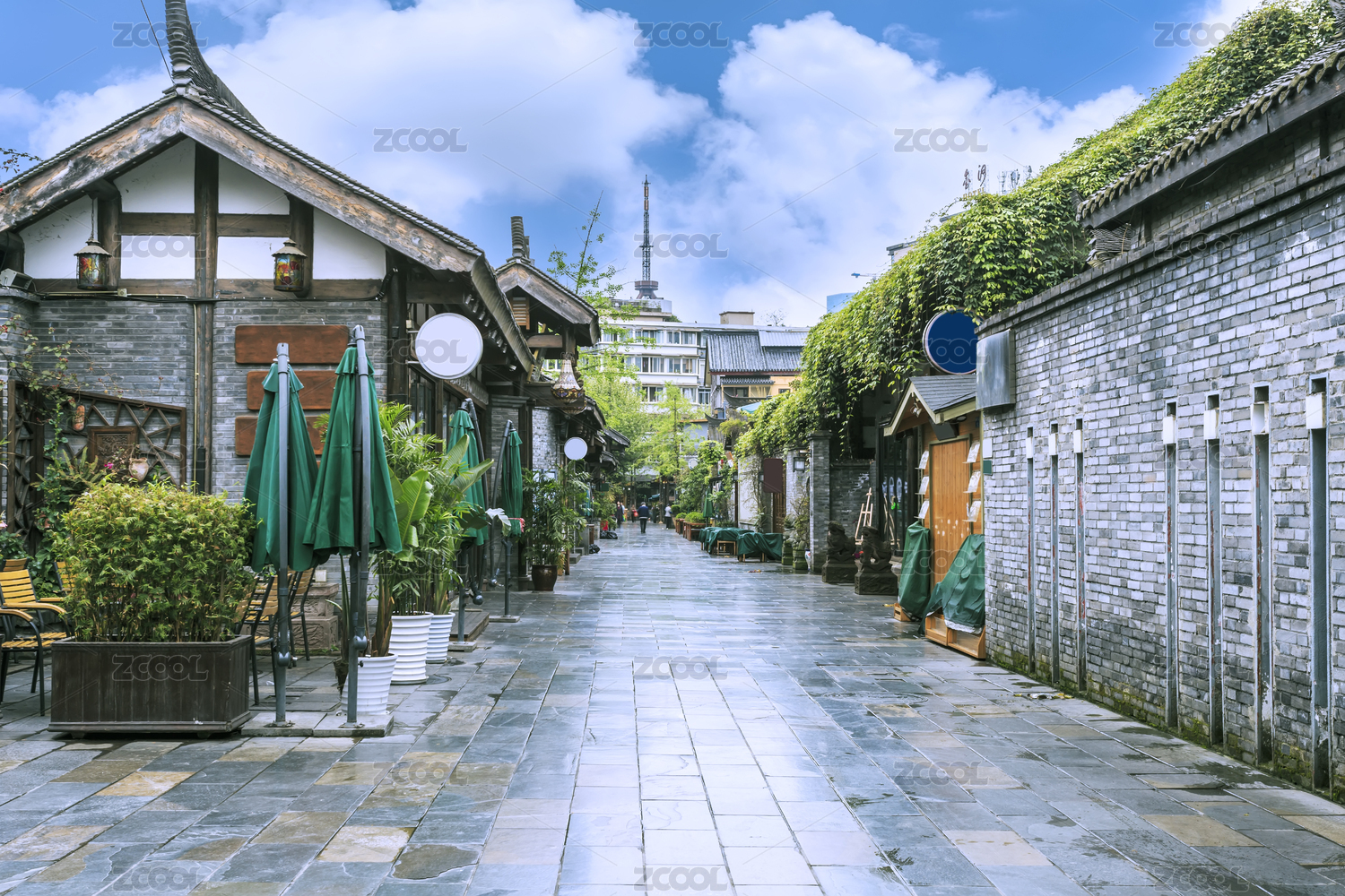 四川成都寬窄巷子街道傳統(tǒng)中式建筑