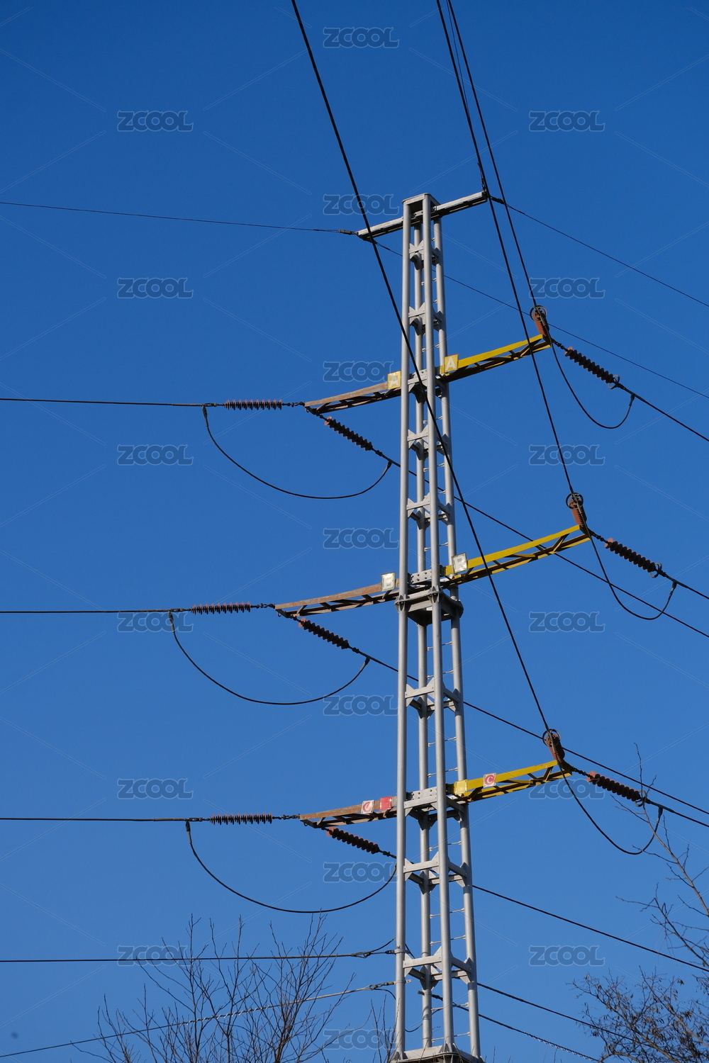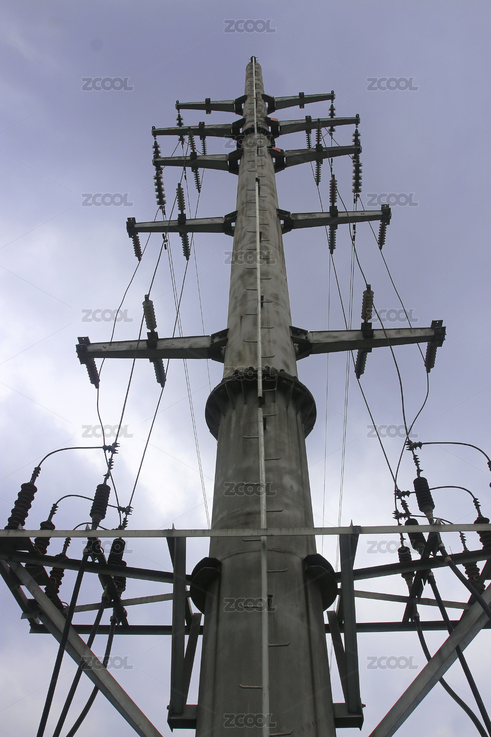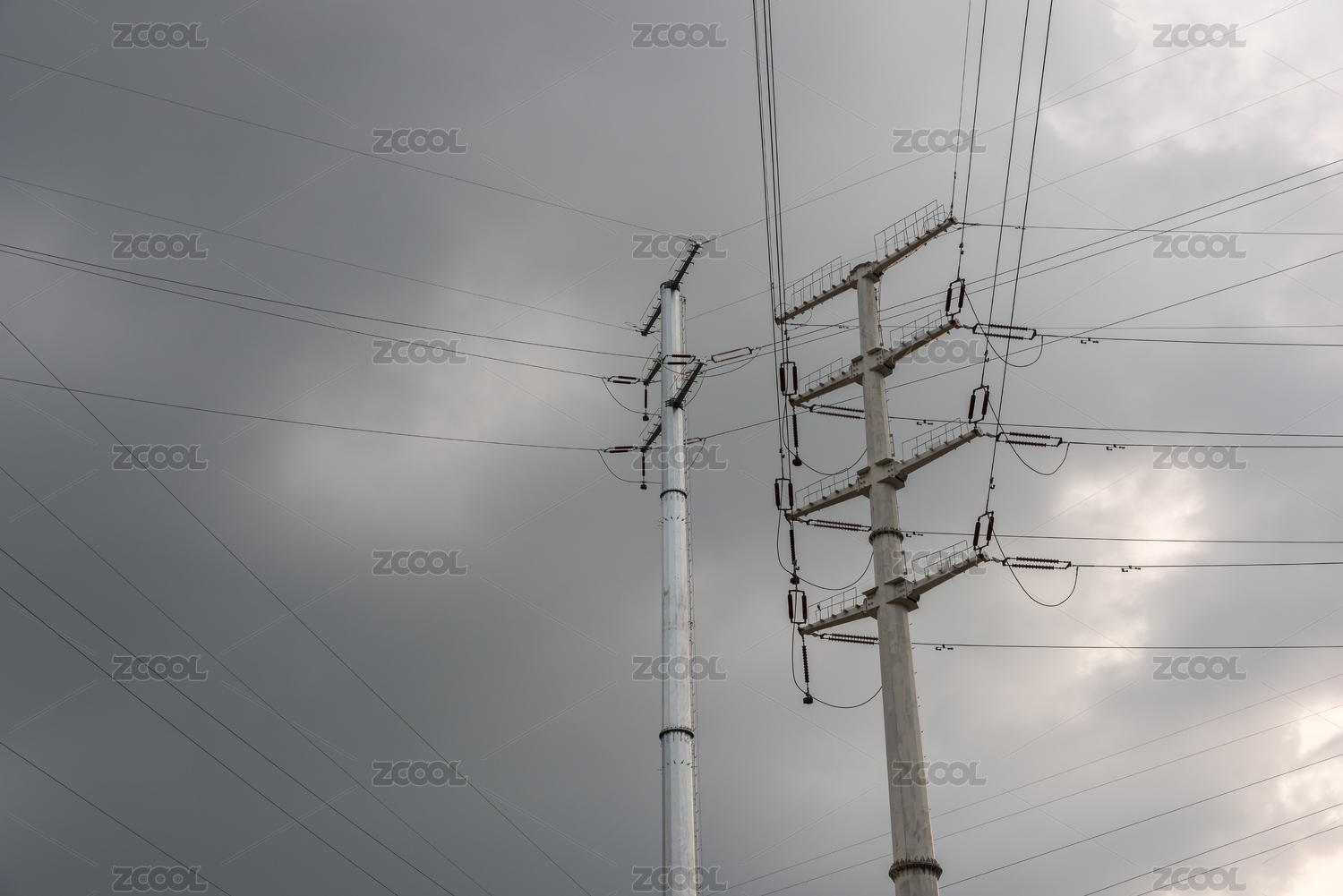 暴風(fēng)雨來臨前的高壓電桿輸電線