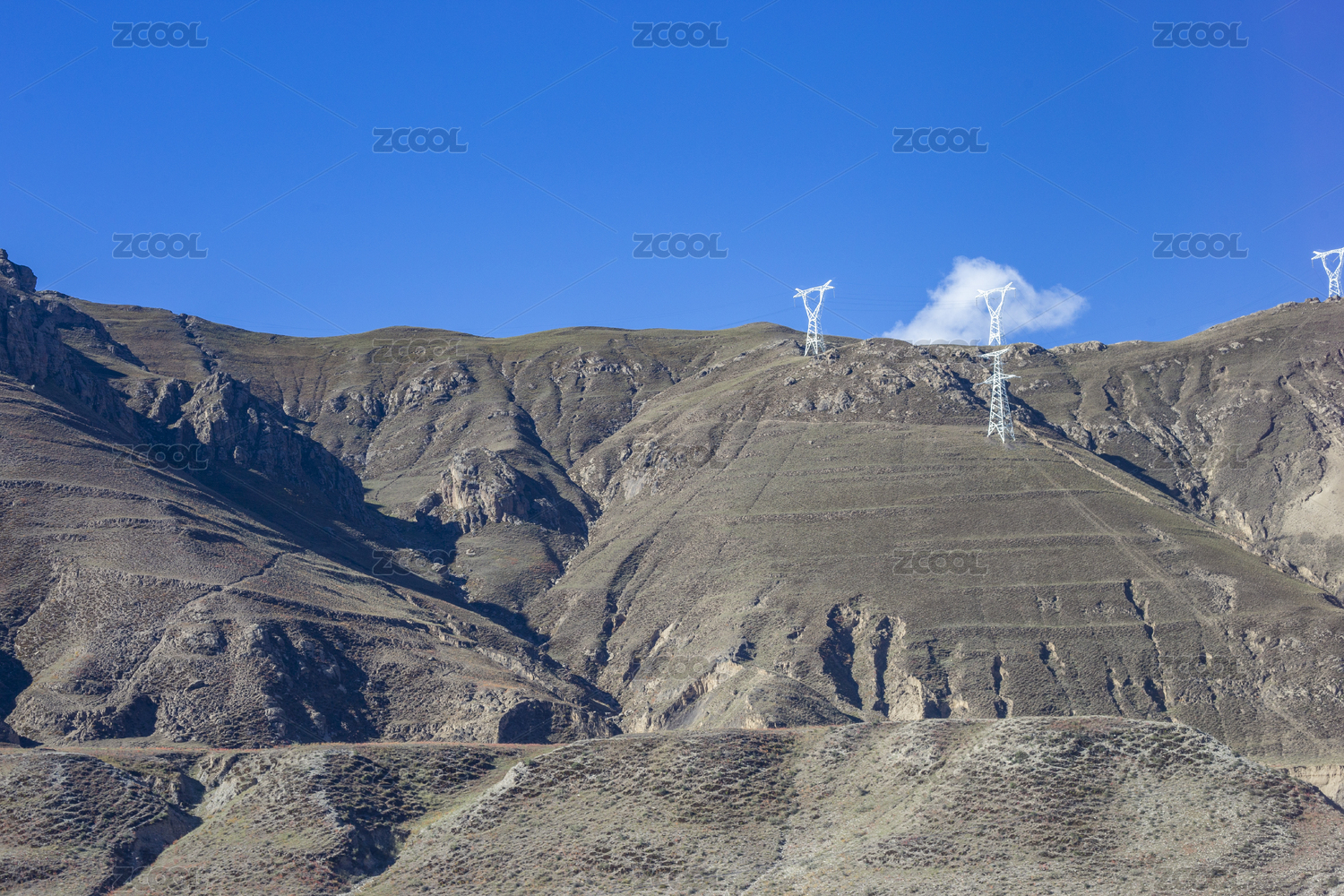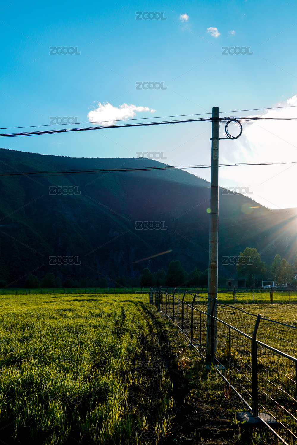 川西新都橋甲根壩草原電桿與遠(yuǎn)山夕照