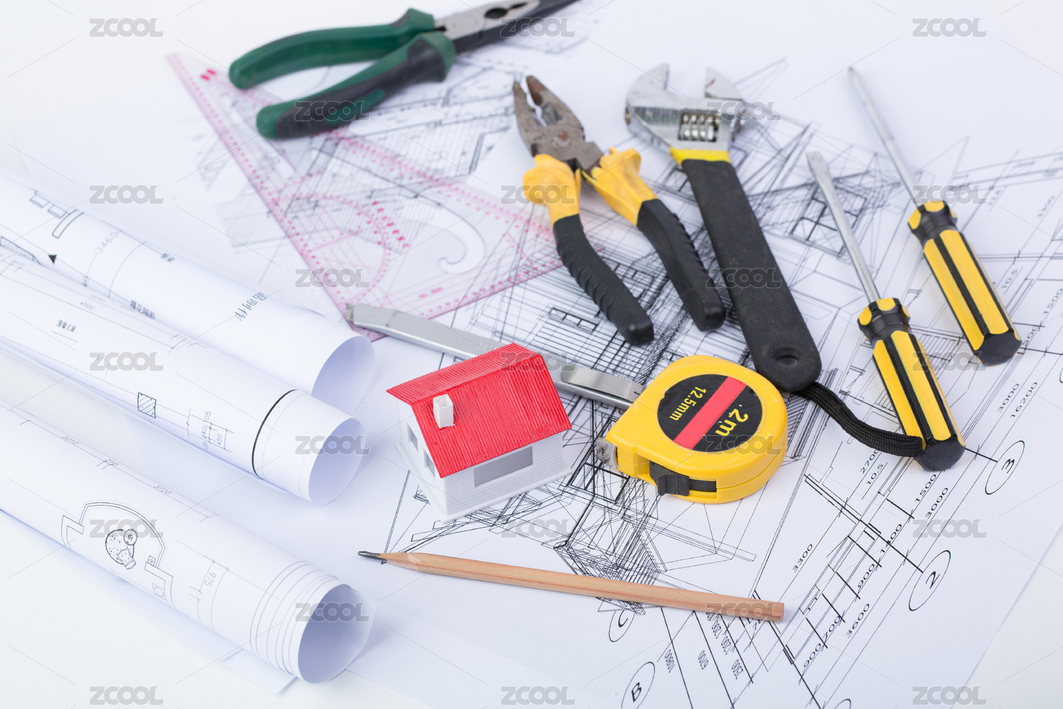 建筑工具和圖紙