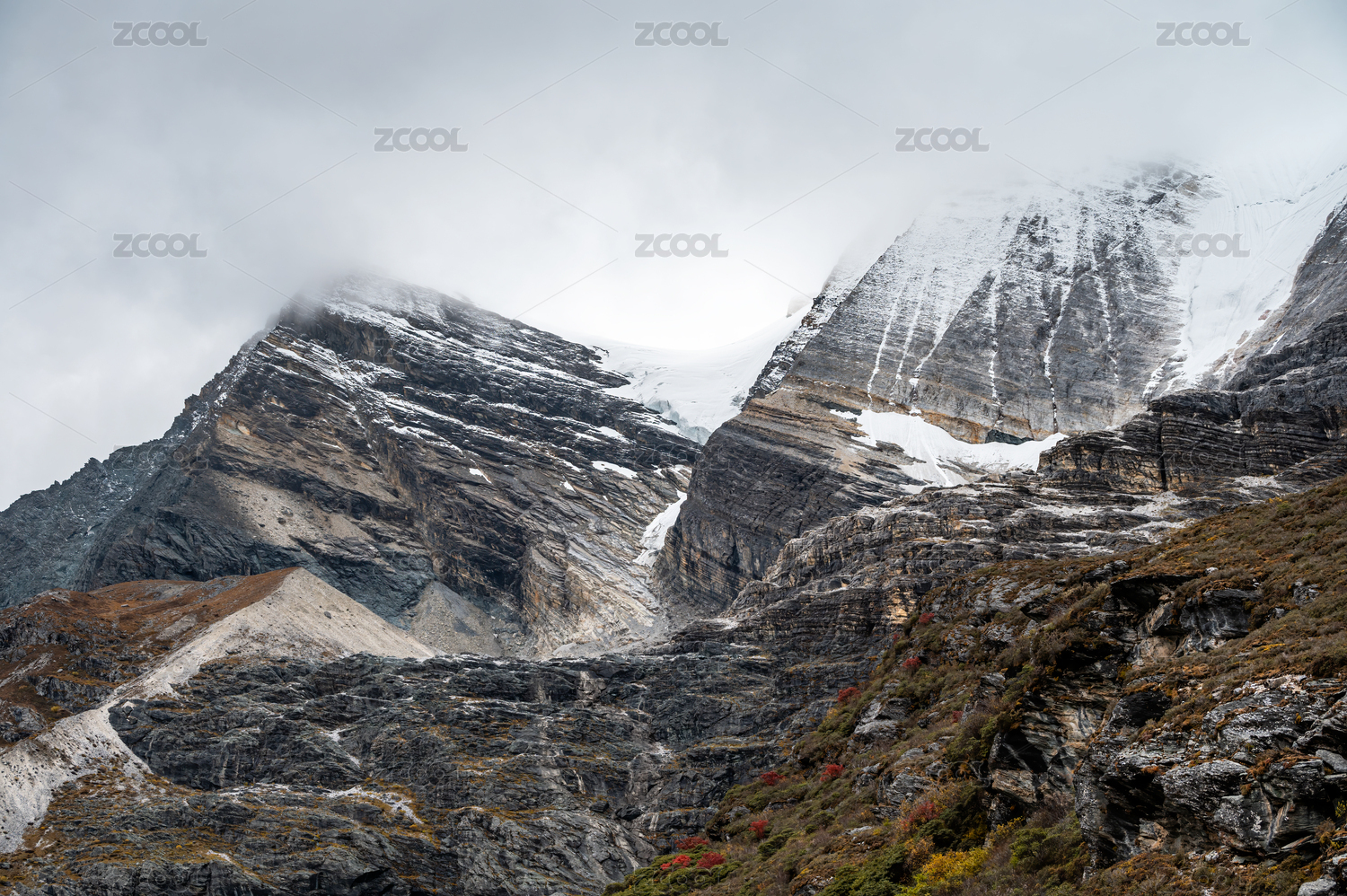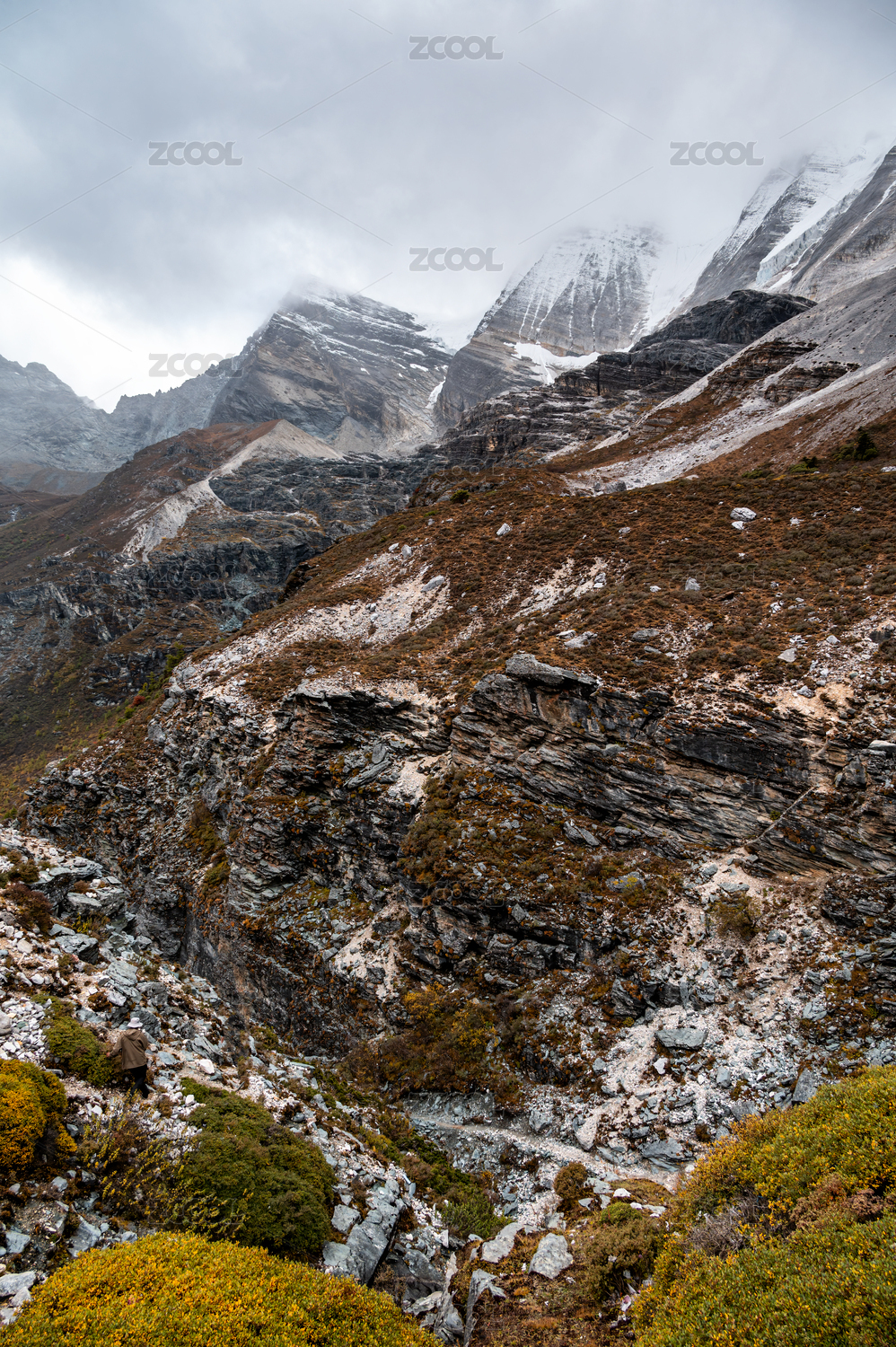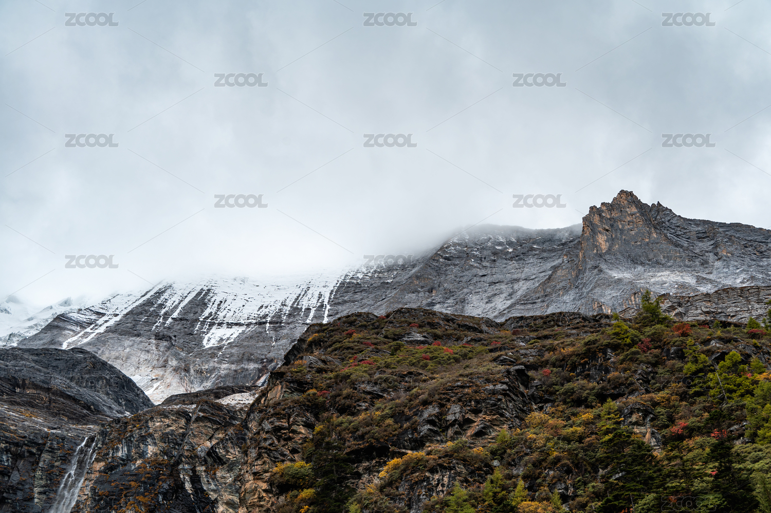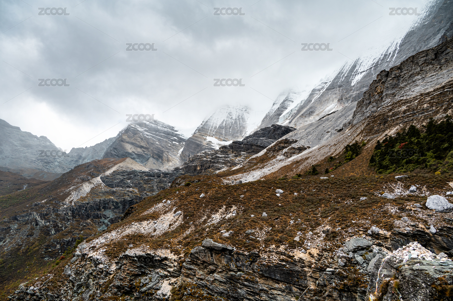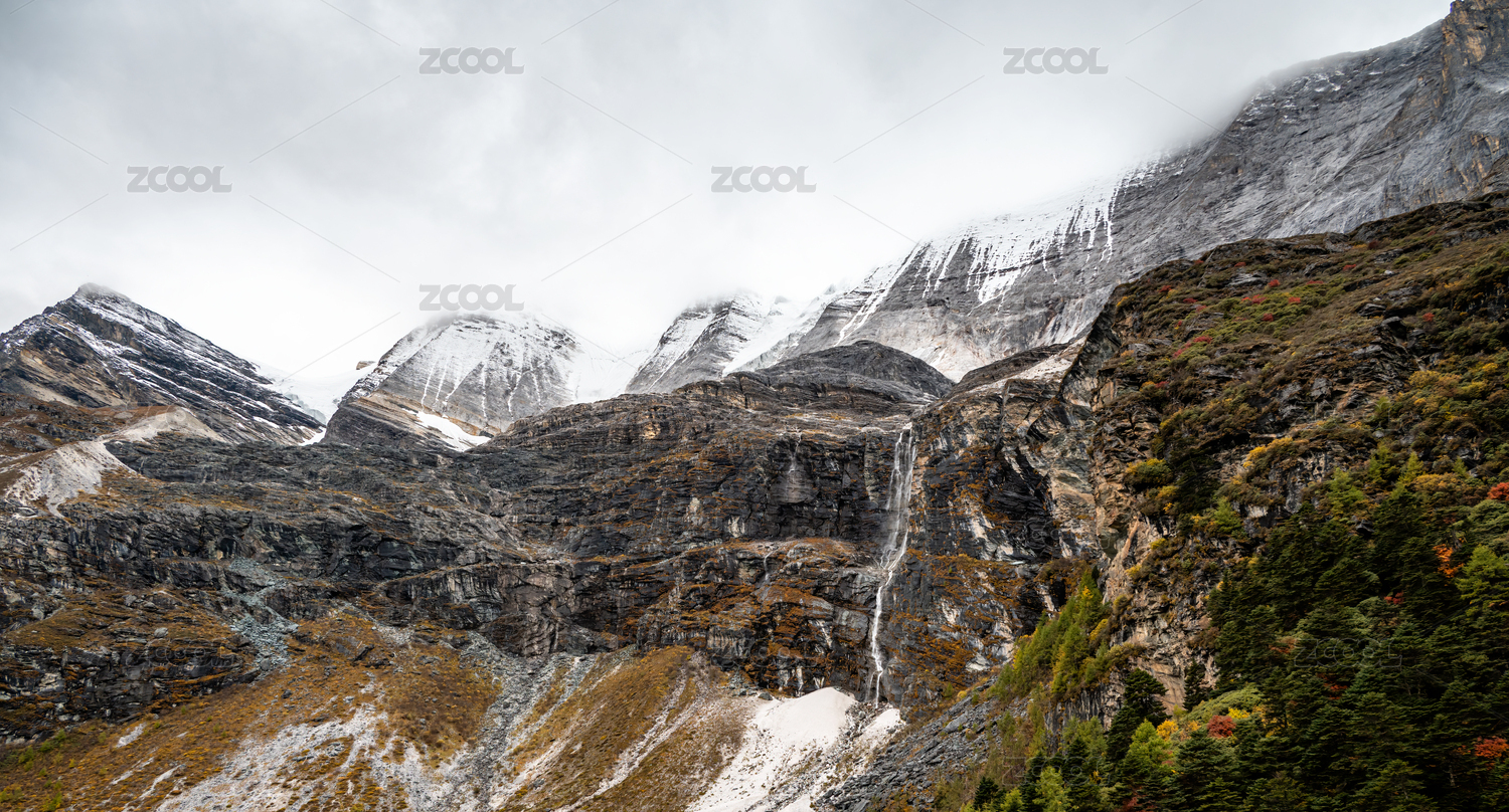 云霧繚繞的四川稻城亞丁高原山地風(fēng)光