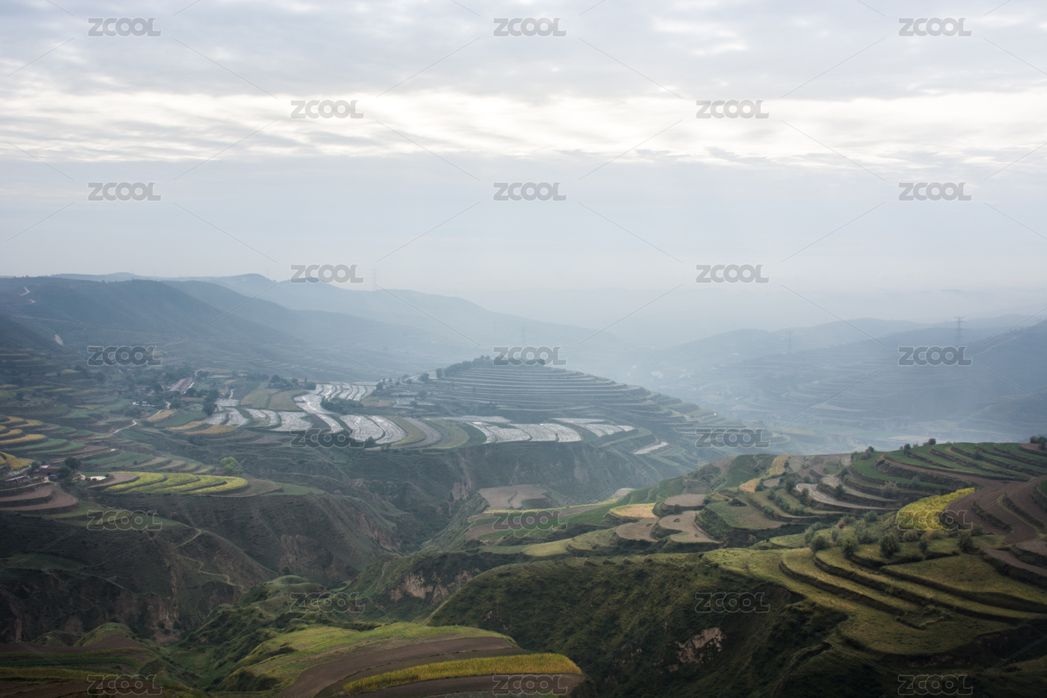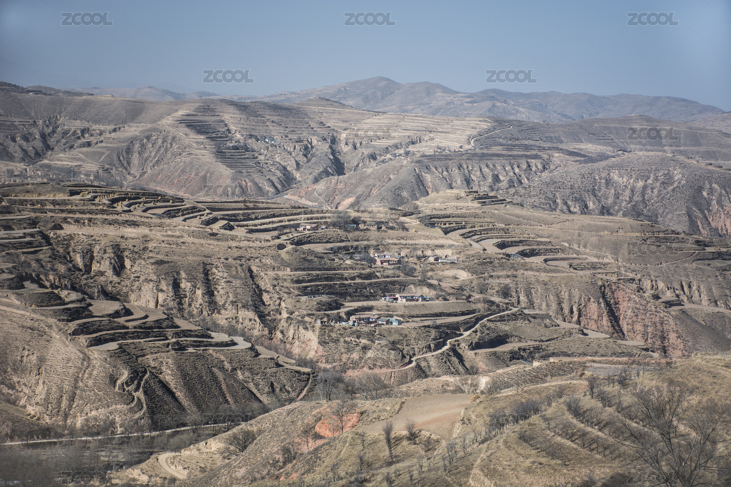 中國西部甘肅中部黃土高原山地梯田自然風(fēng)光