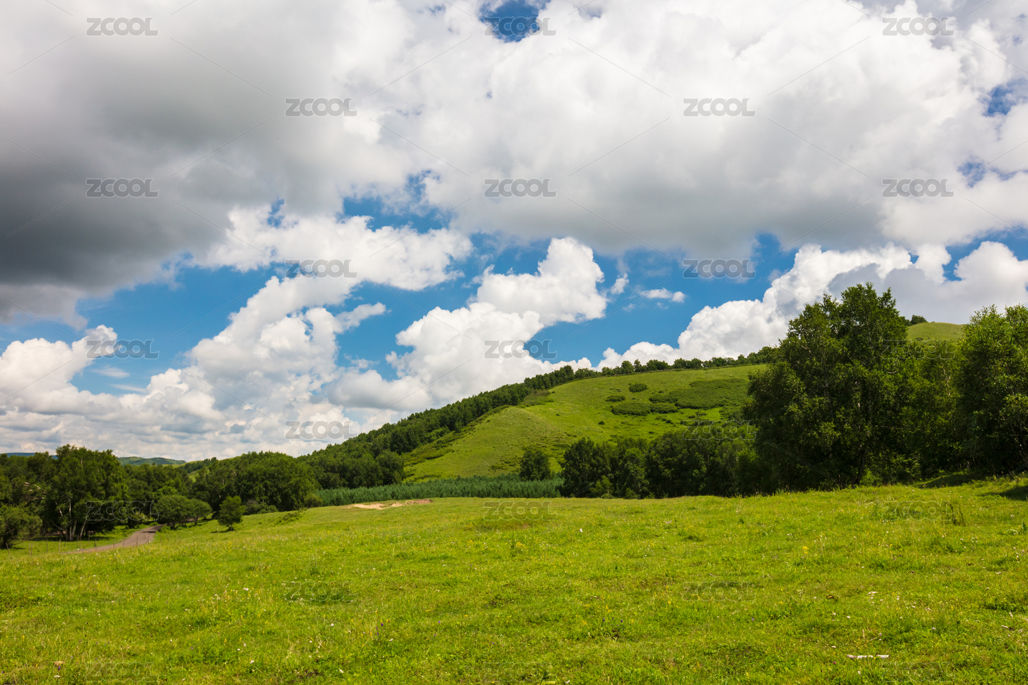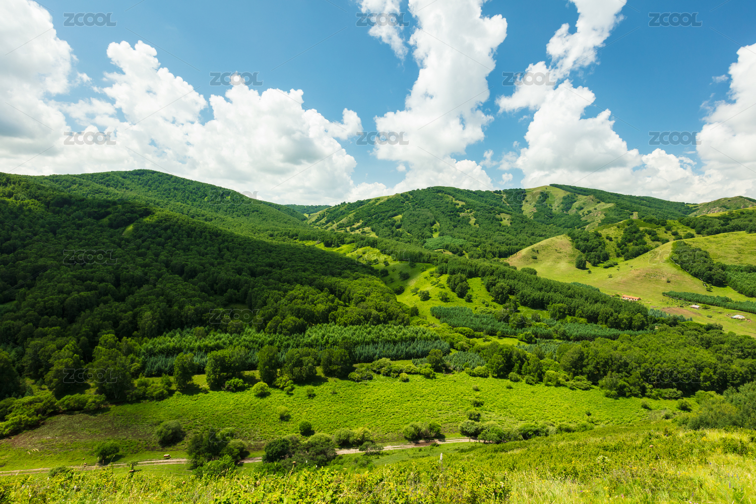 中國內(nèi)蒙古赤峰樺木溝林場景區(qū)山地草原藍天白云