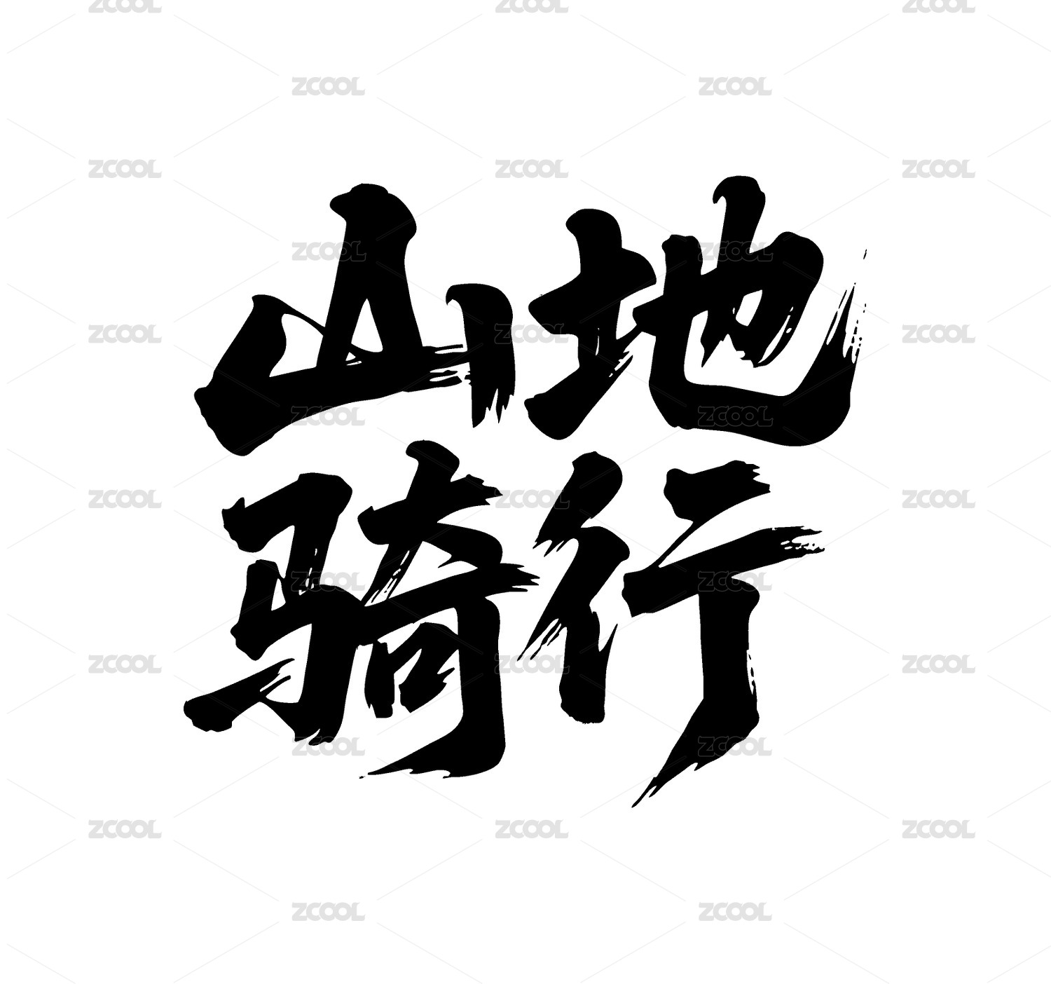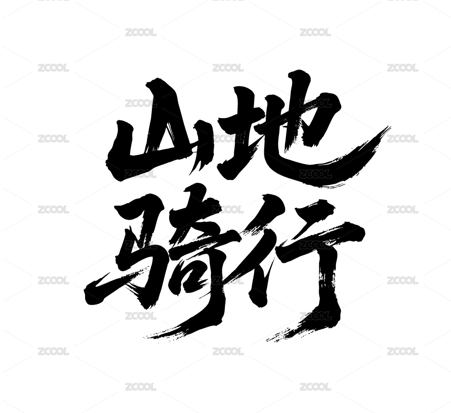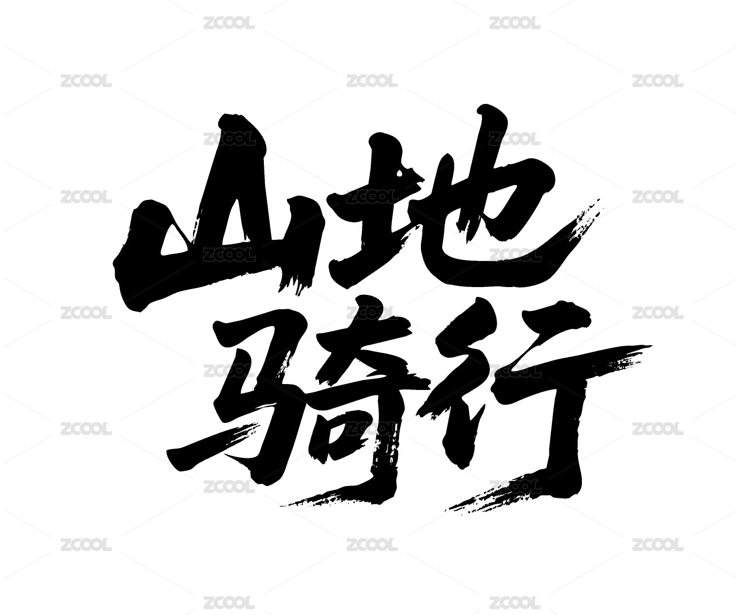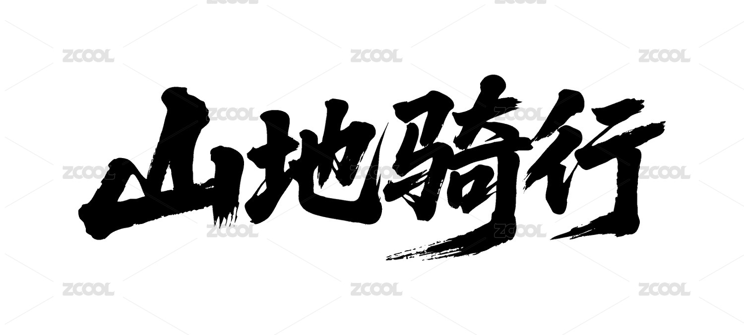 山地騎行矢量書法手寫毛筆字