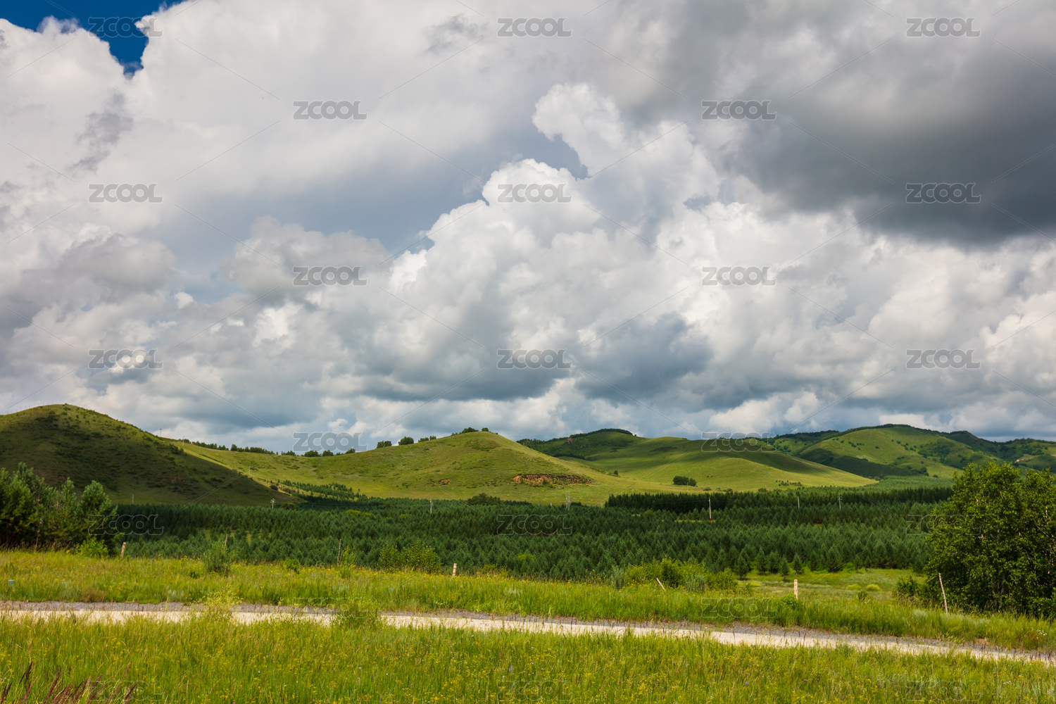 內(nèi)蒙古赤峰樺木溝林場景區(qū)山地草原藍天白云