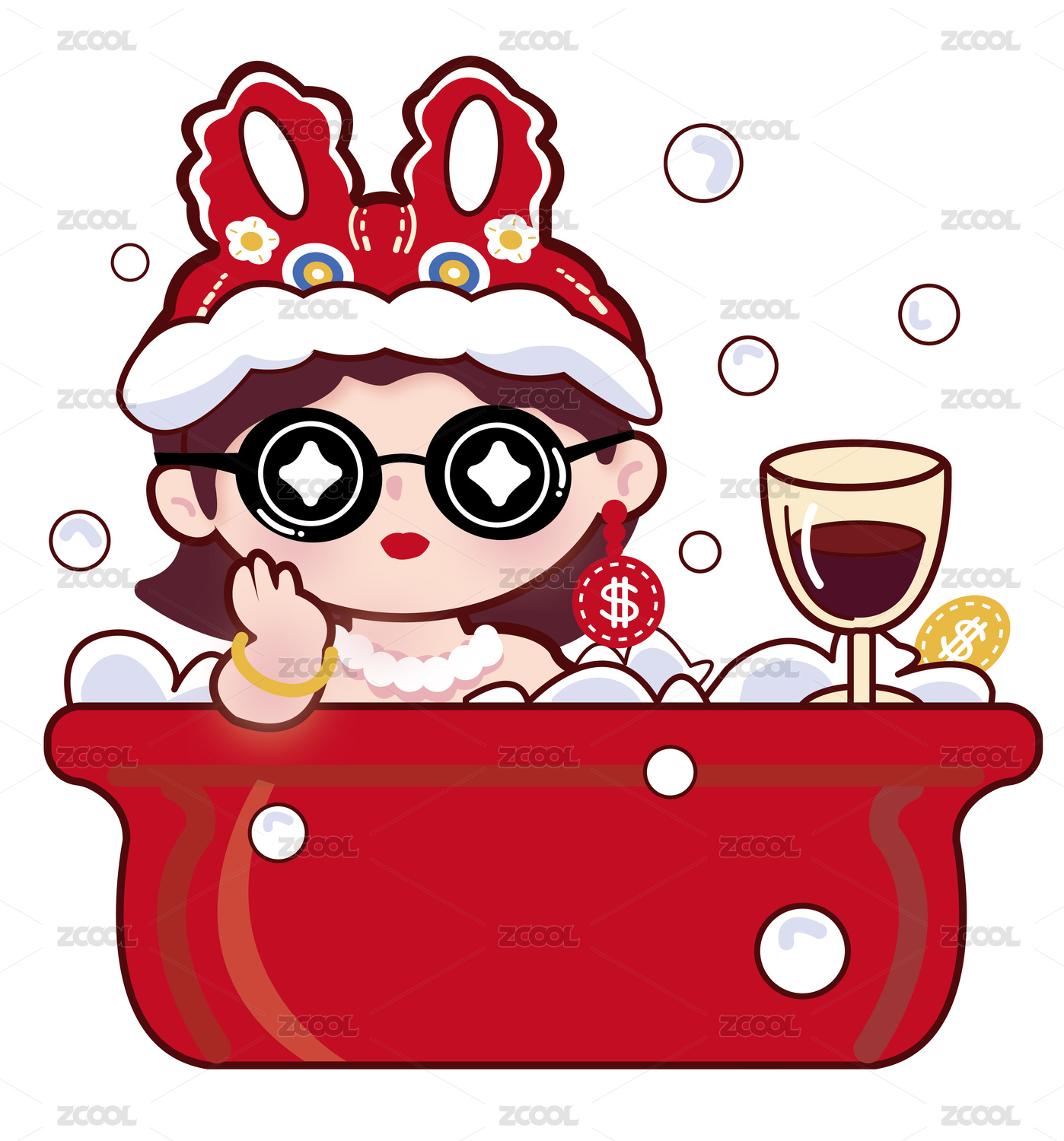 女孩與她的貓,浴缸泡澡女孩浴室場(chǎng)景插畫