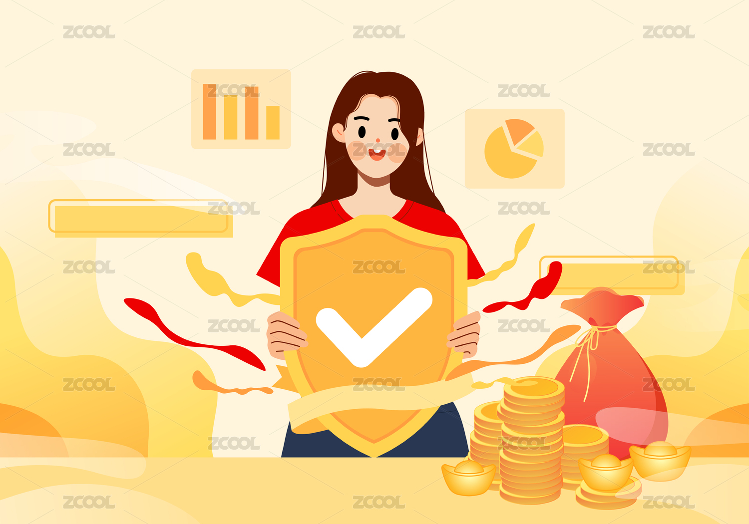中國金融投資理財保險3D商業(yè)矢量插畫海報