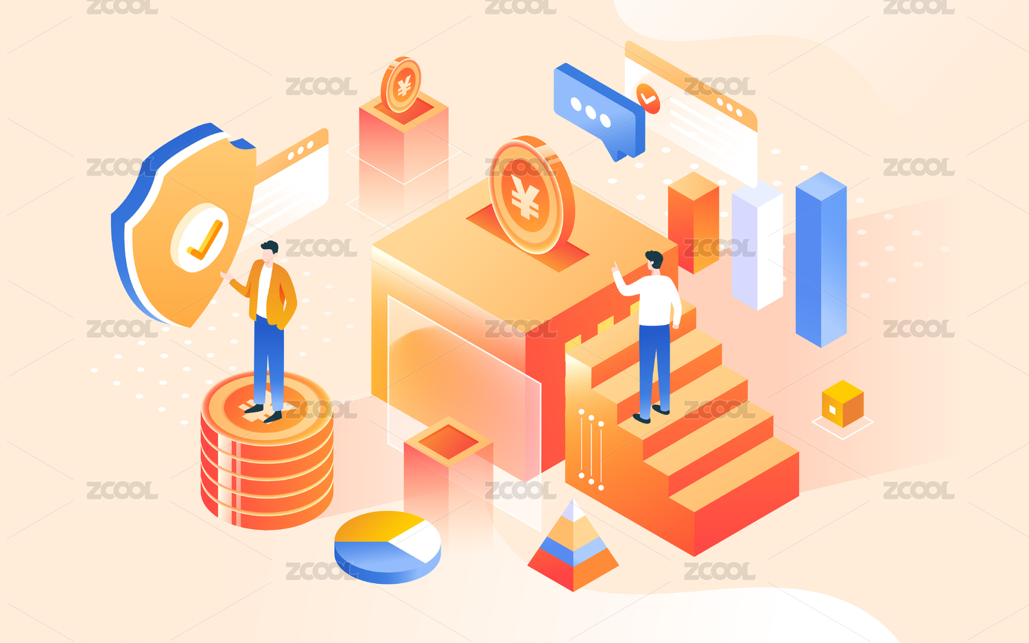 孟菲斯互聯(lián)網(wǎng)金融理財投資扁平矢量概念運營