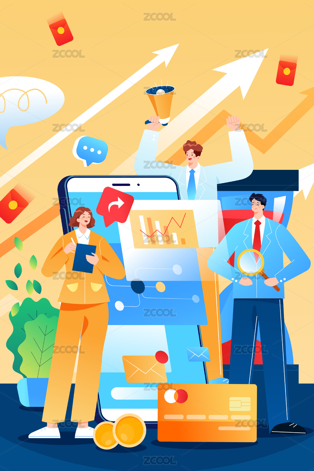 互聯(lián)網(wǎng)金融理財產(chǎn)品人物矢量海報創(chuàng)意插畫