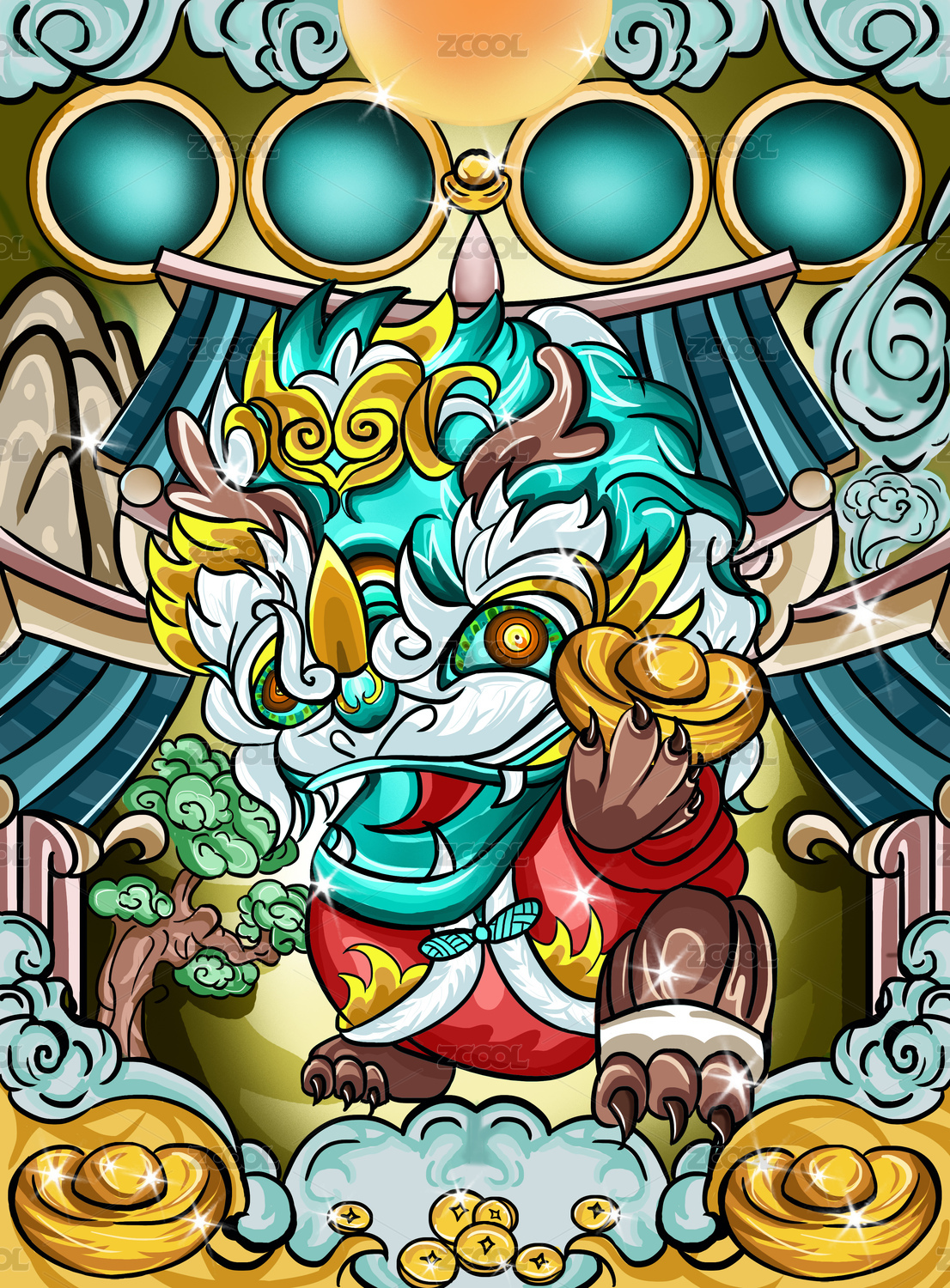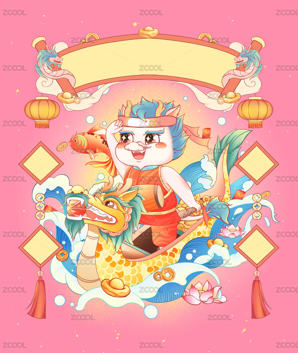 卡通國潮龍年形象插畫