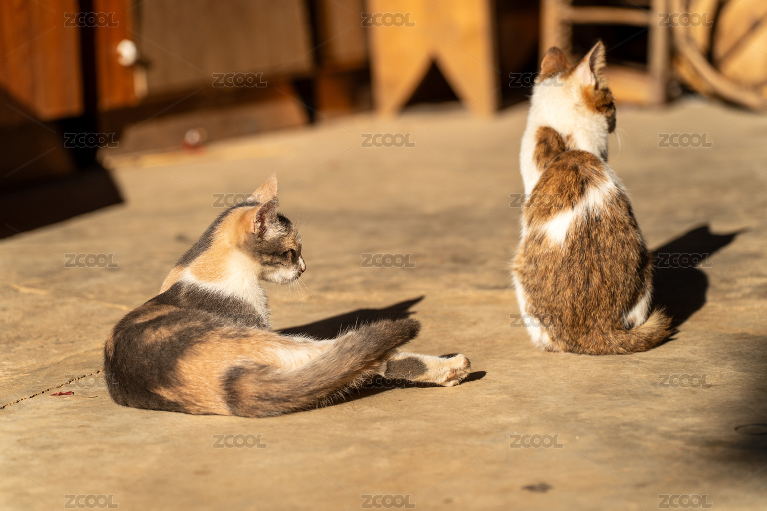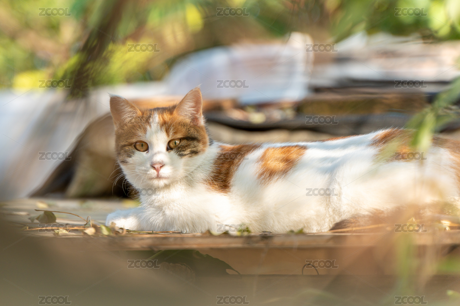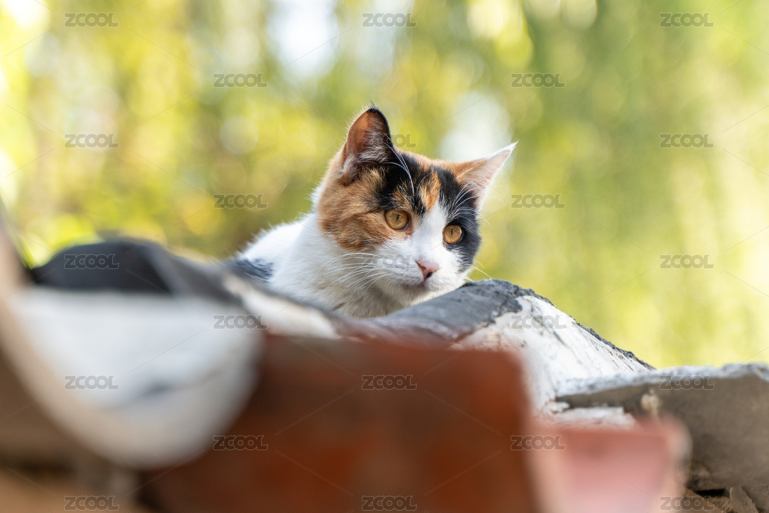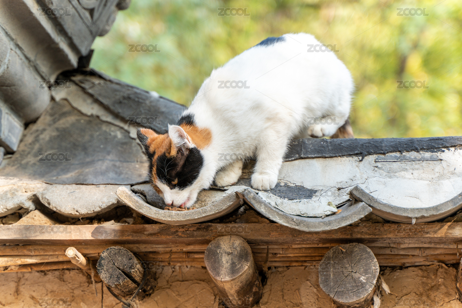 三色貓的愜意時(shí)刻 屋頂進(jìn)食姿態(tài)