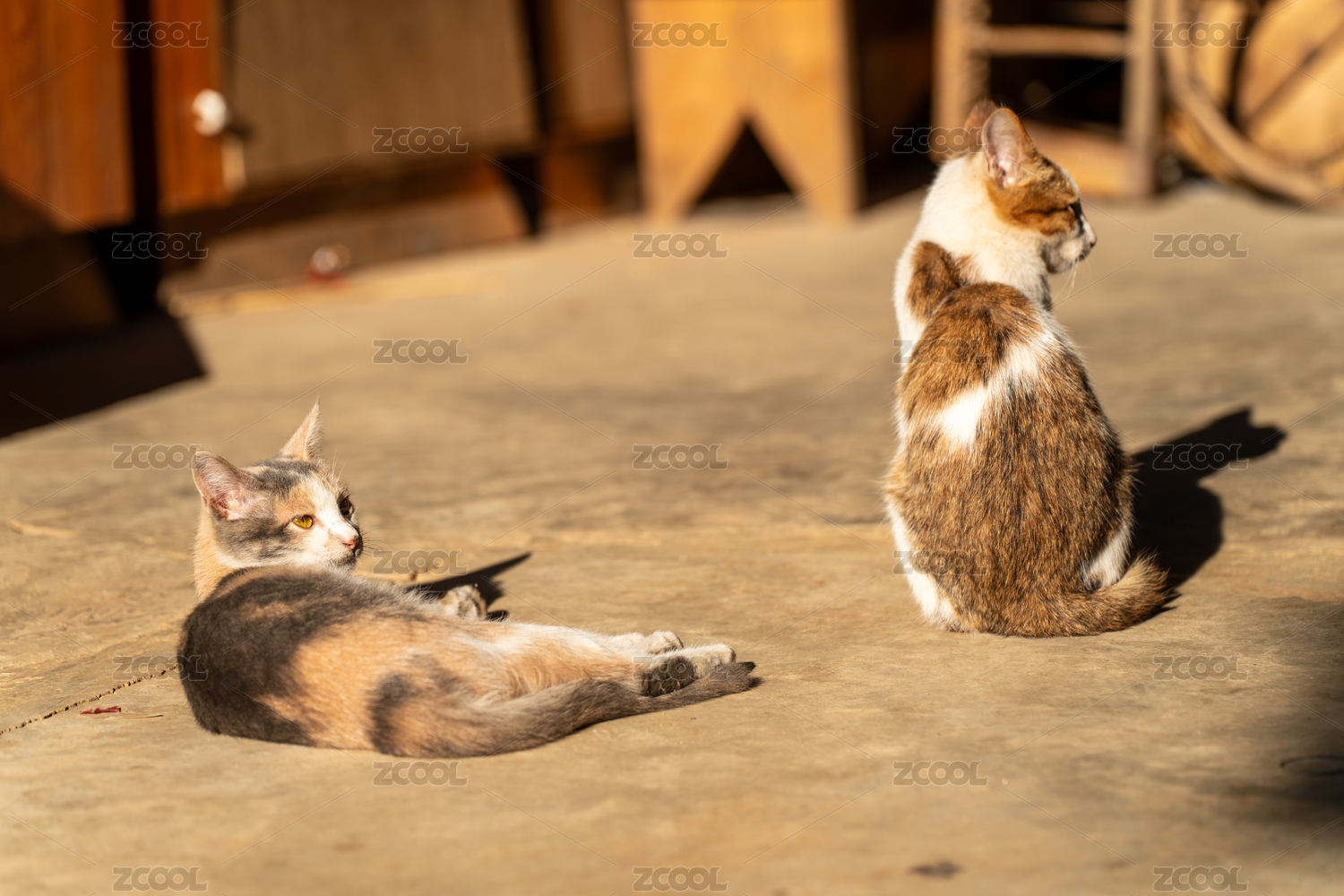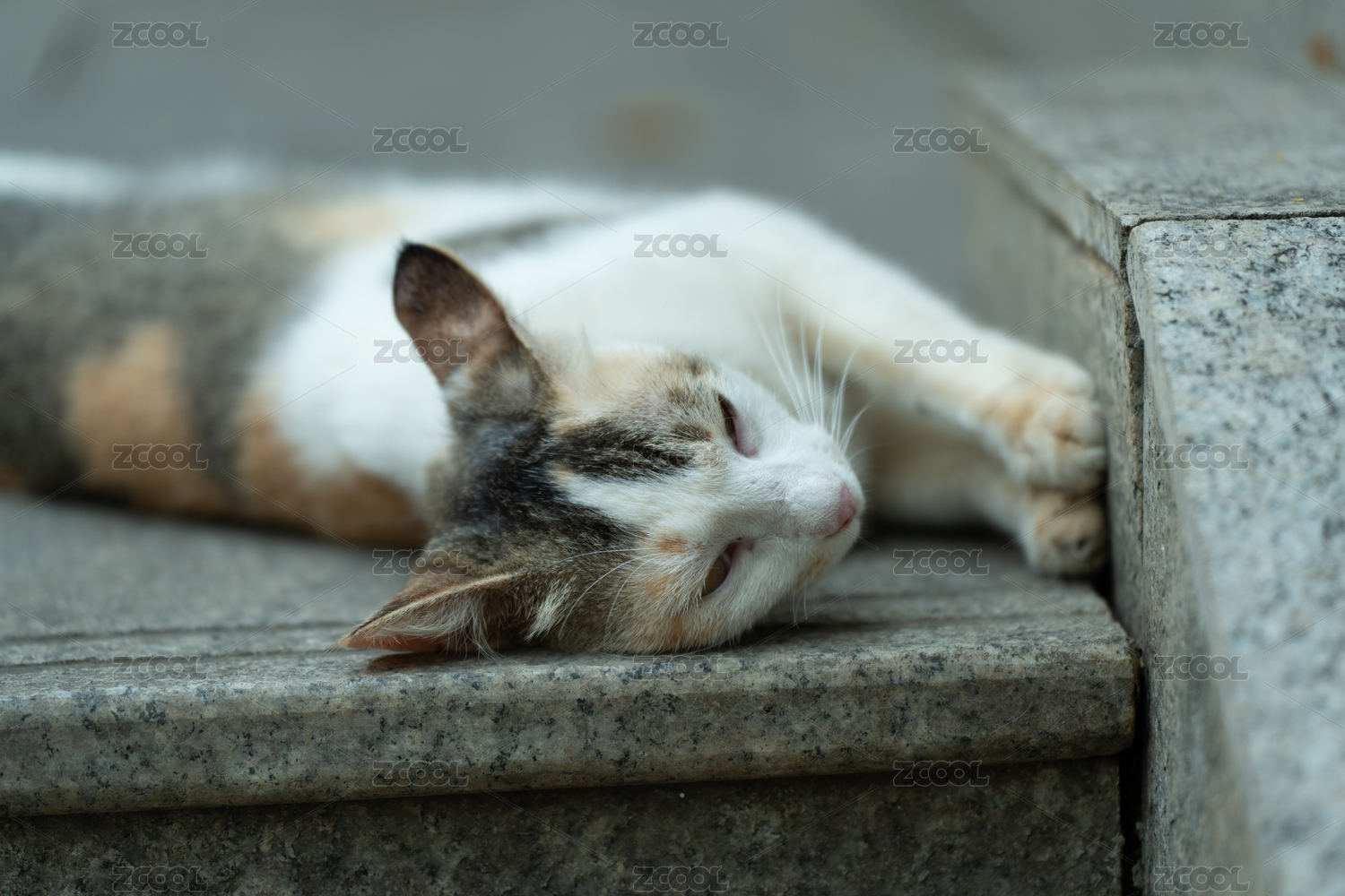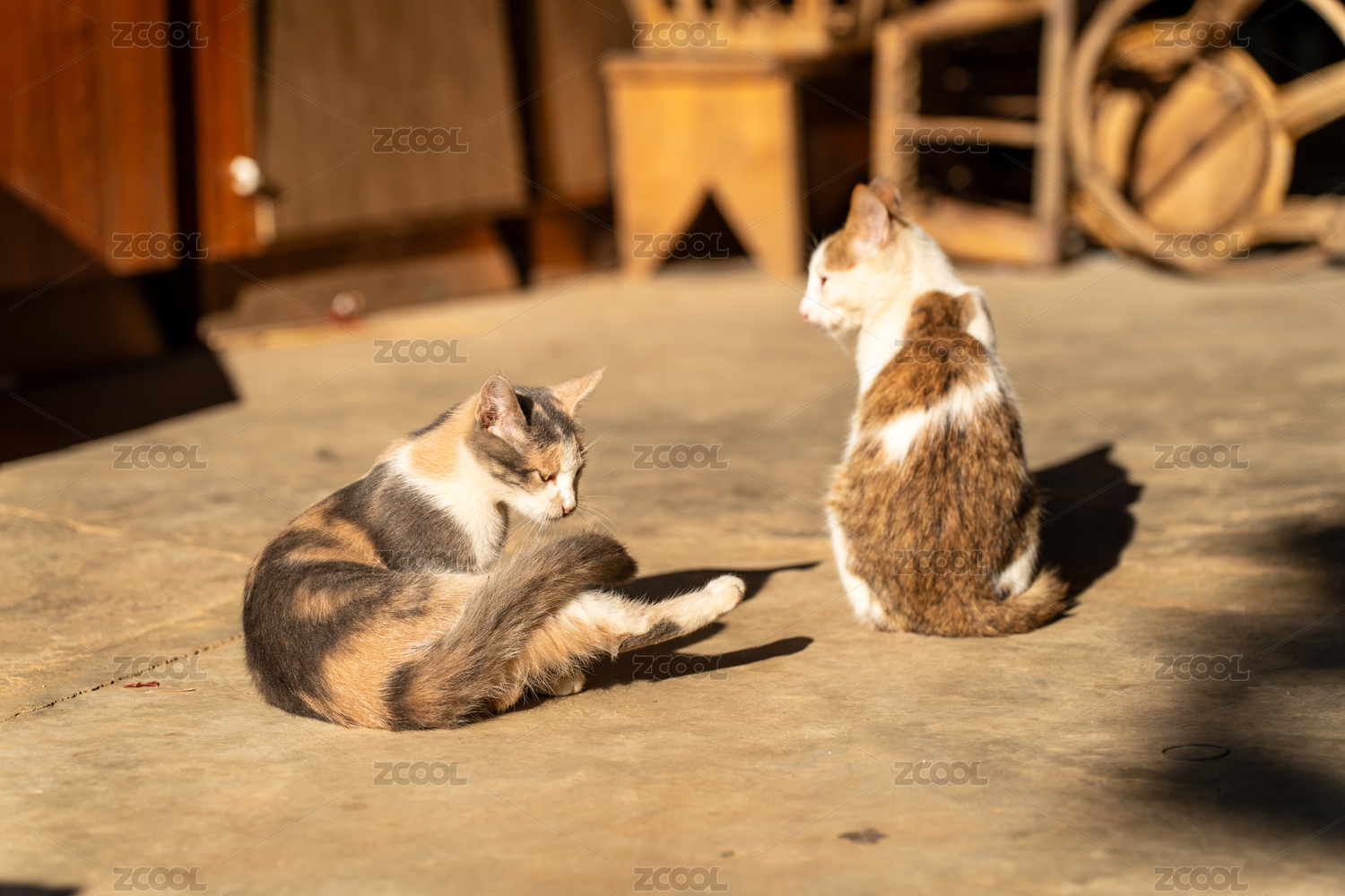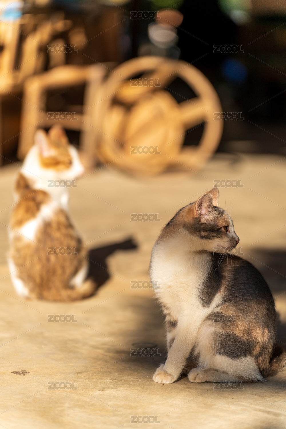 三色貓的愜意時(shí)刻 屋頂進(jìn)食姿態(tài)