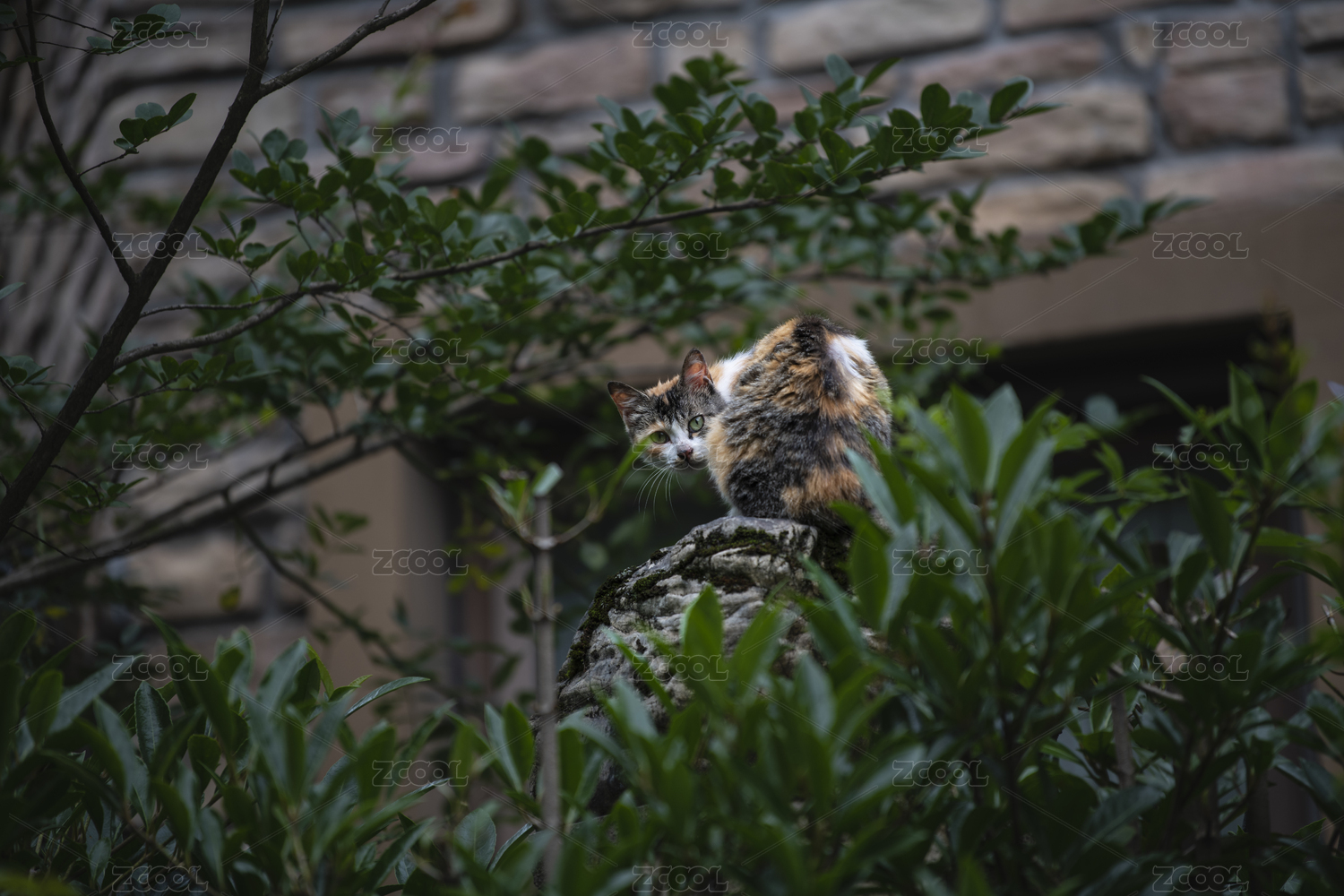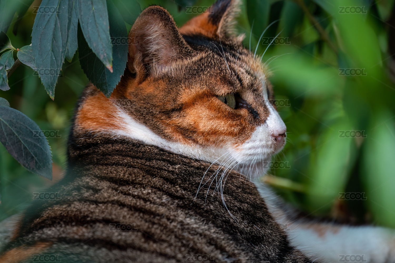 綠葉掩映下的一只三花貓?zhí)貙?/div>